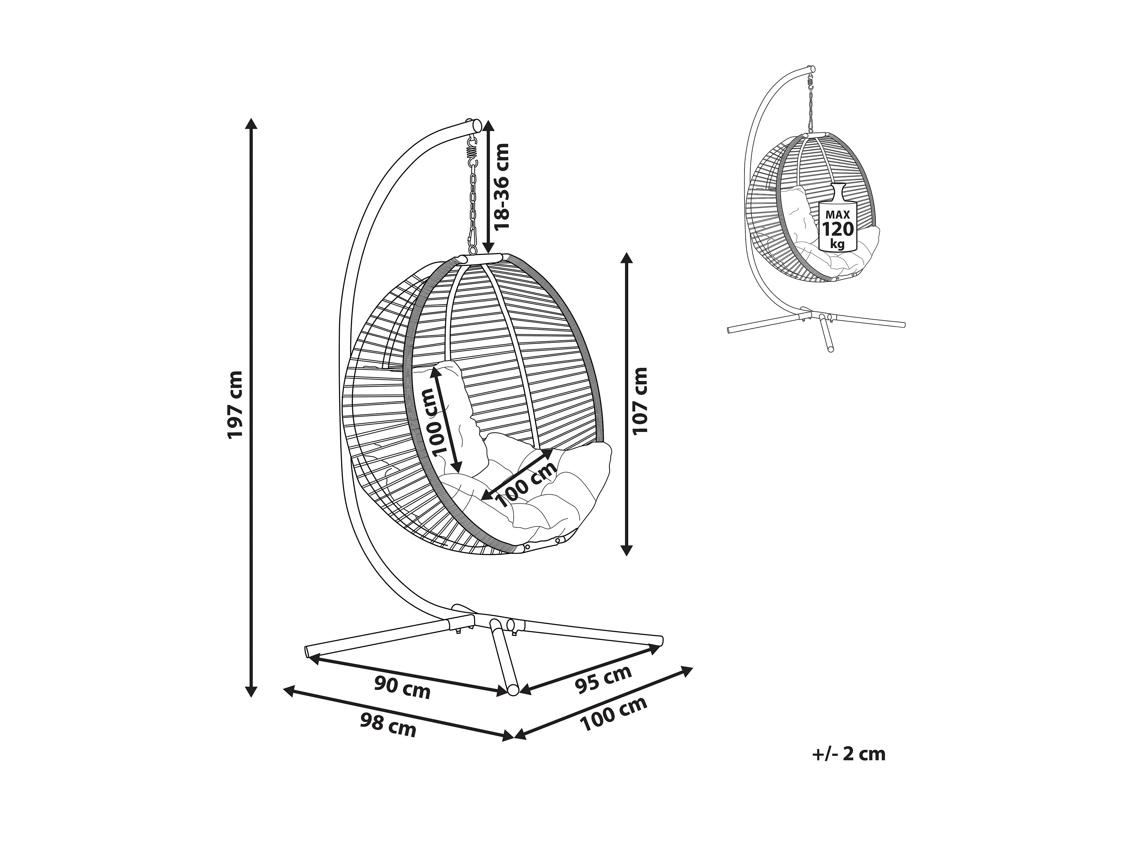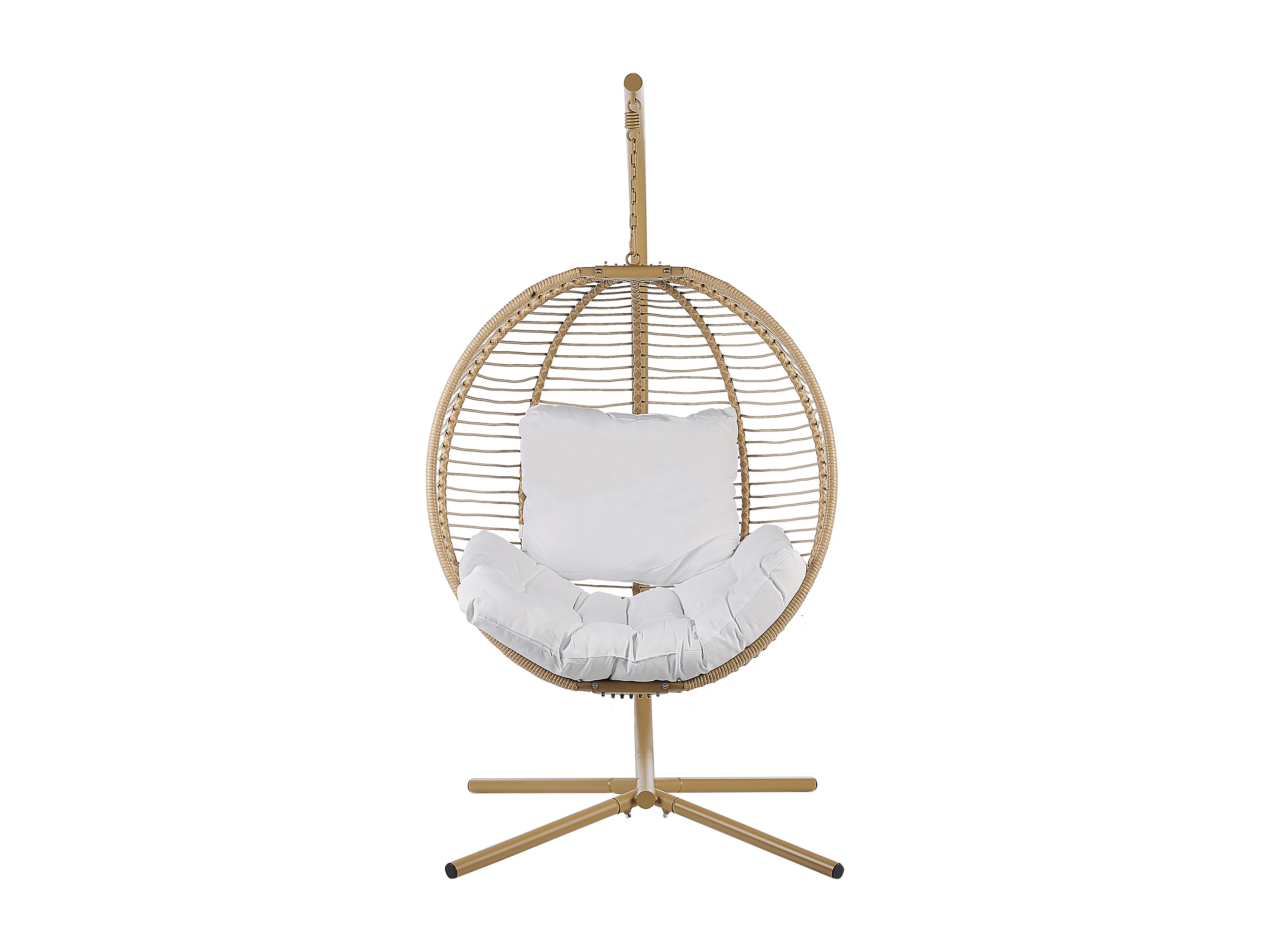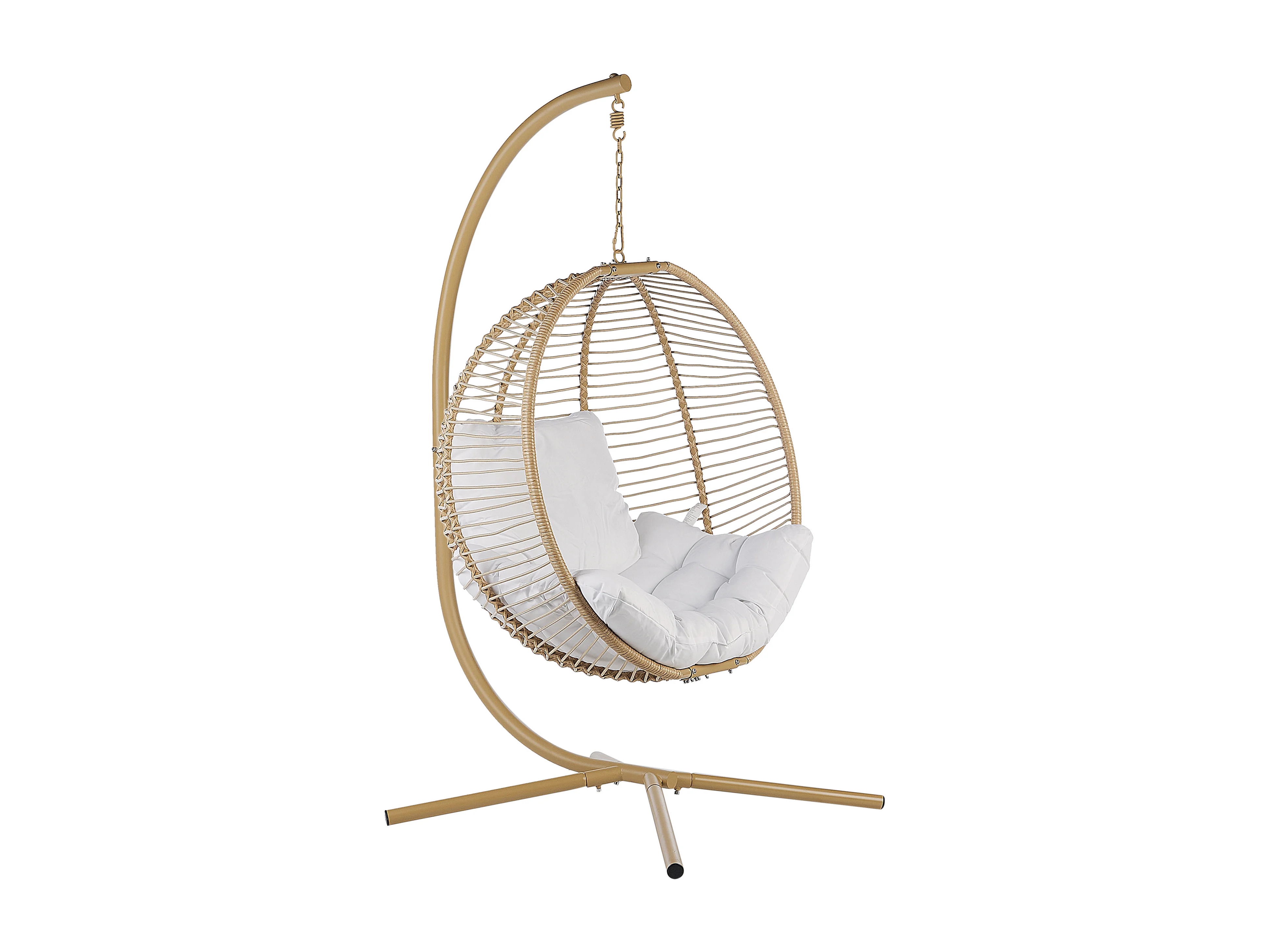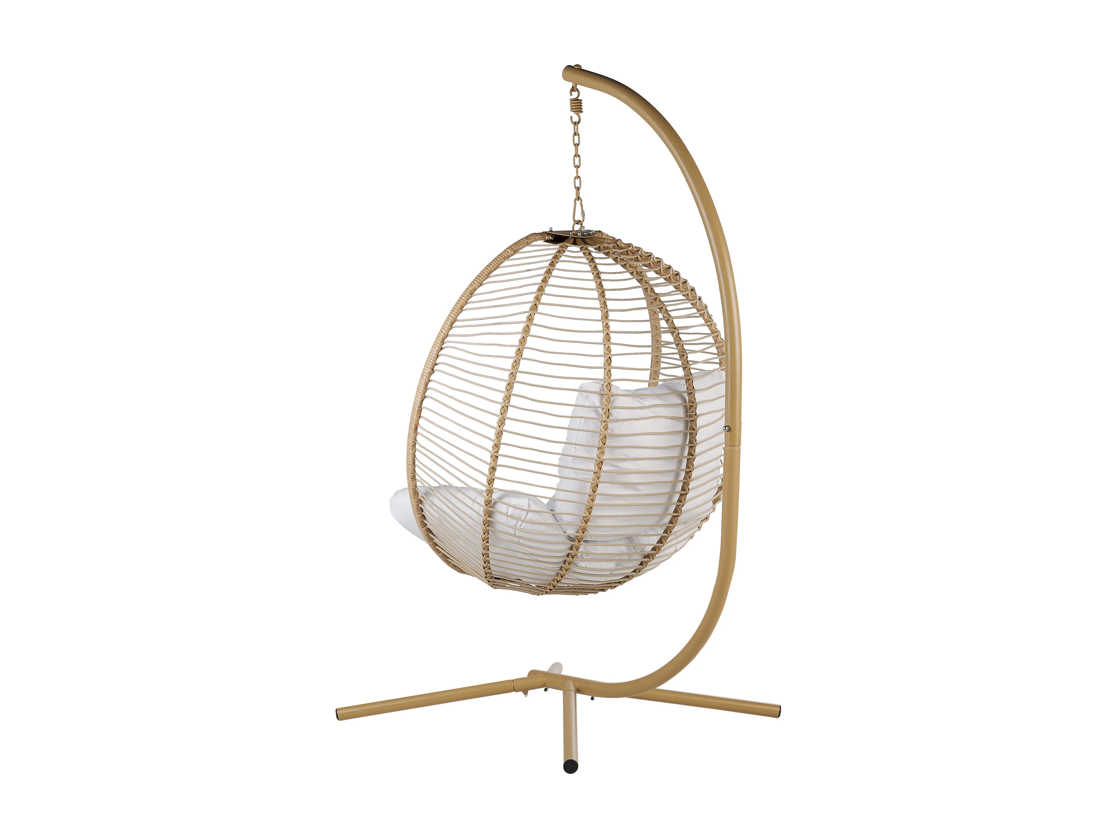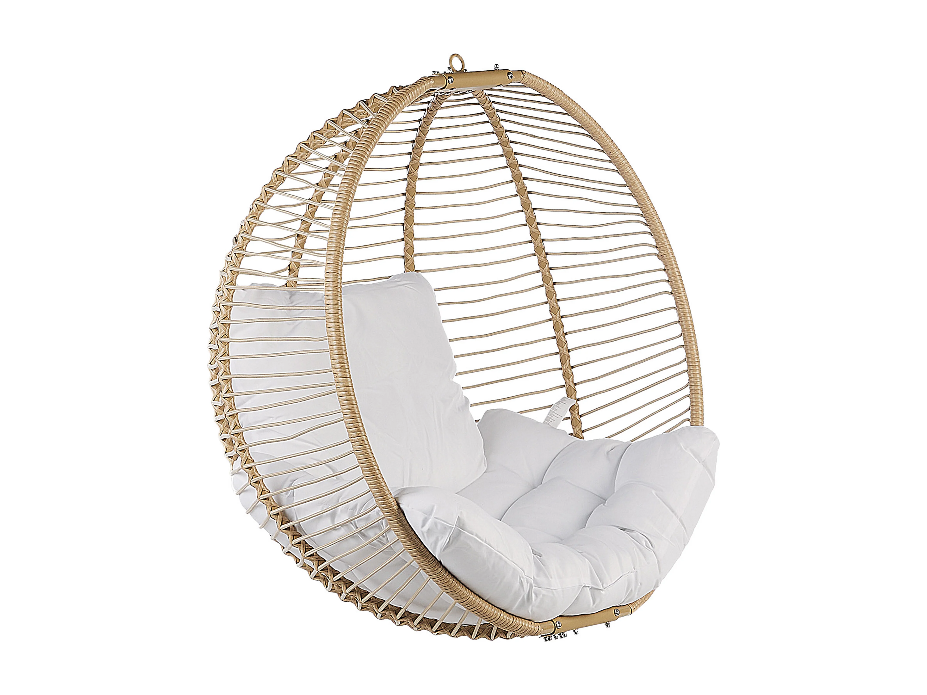 Moderner Hängekorbsessel Flechtseil mit beigem Gestell inkl. Kissen weiß Arco