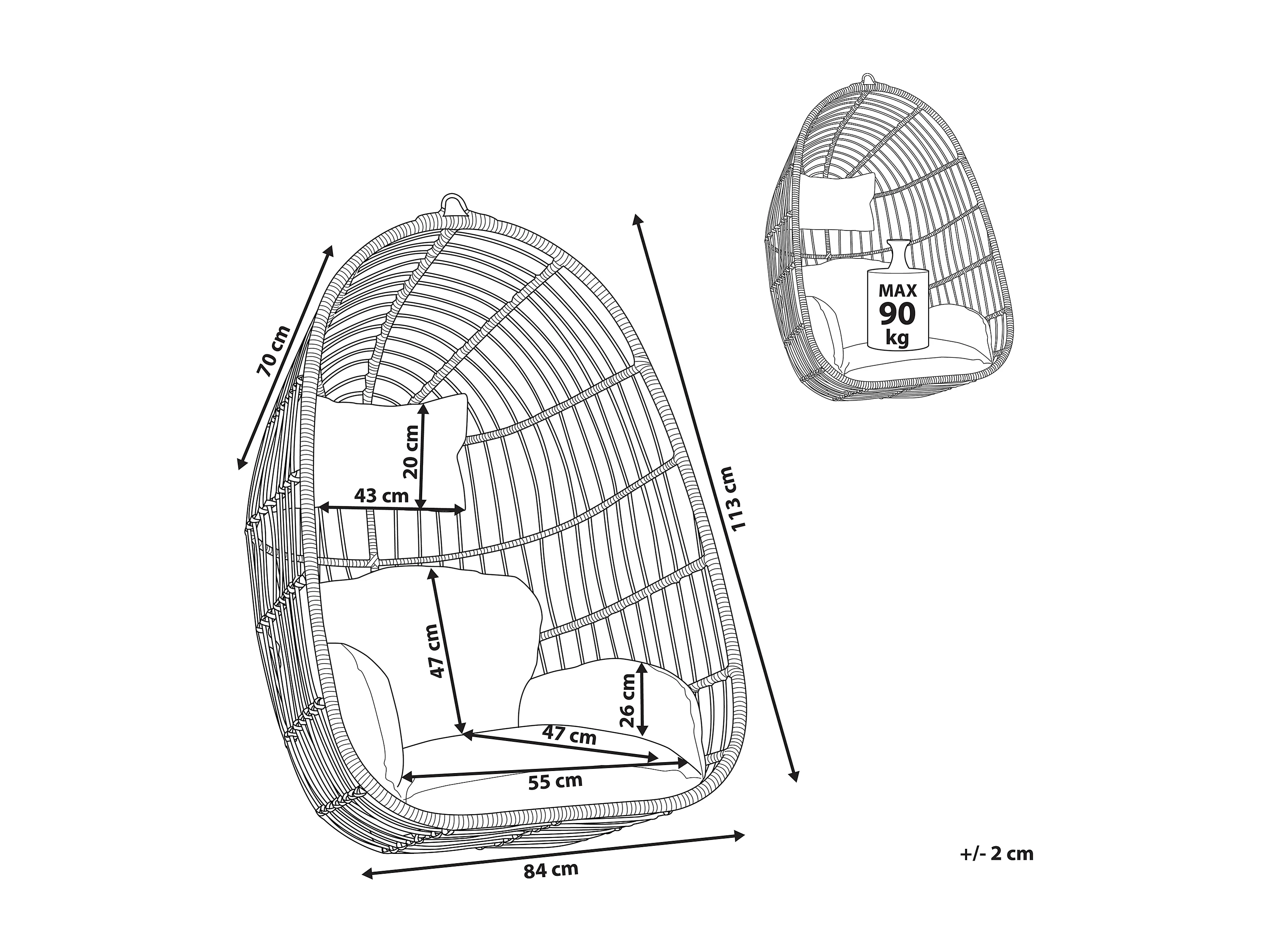 Moderner Hängekorbsessel Rattan ohne Gestell inkl. Kissen Grau Casoli