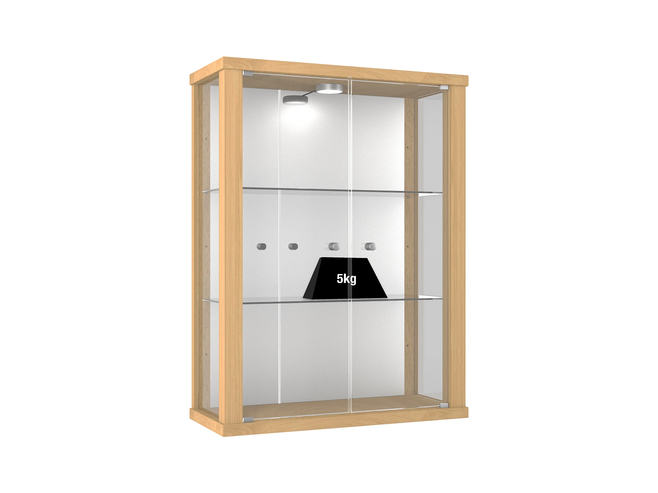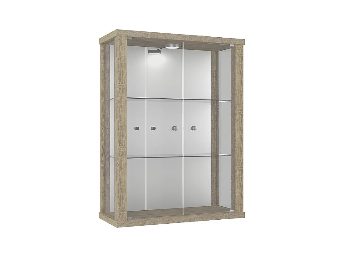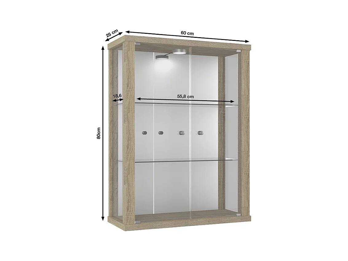 Hängevitrine mit 2 Türen, 2 Höhenverstellbaren Glasböden & Spiegel - Mit LED-Beleuchtung- 80x60x25 cm - Sonoma Eiche