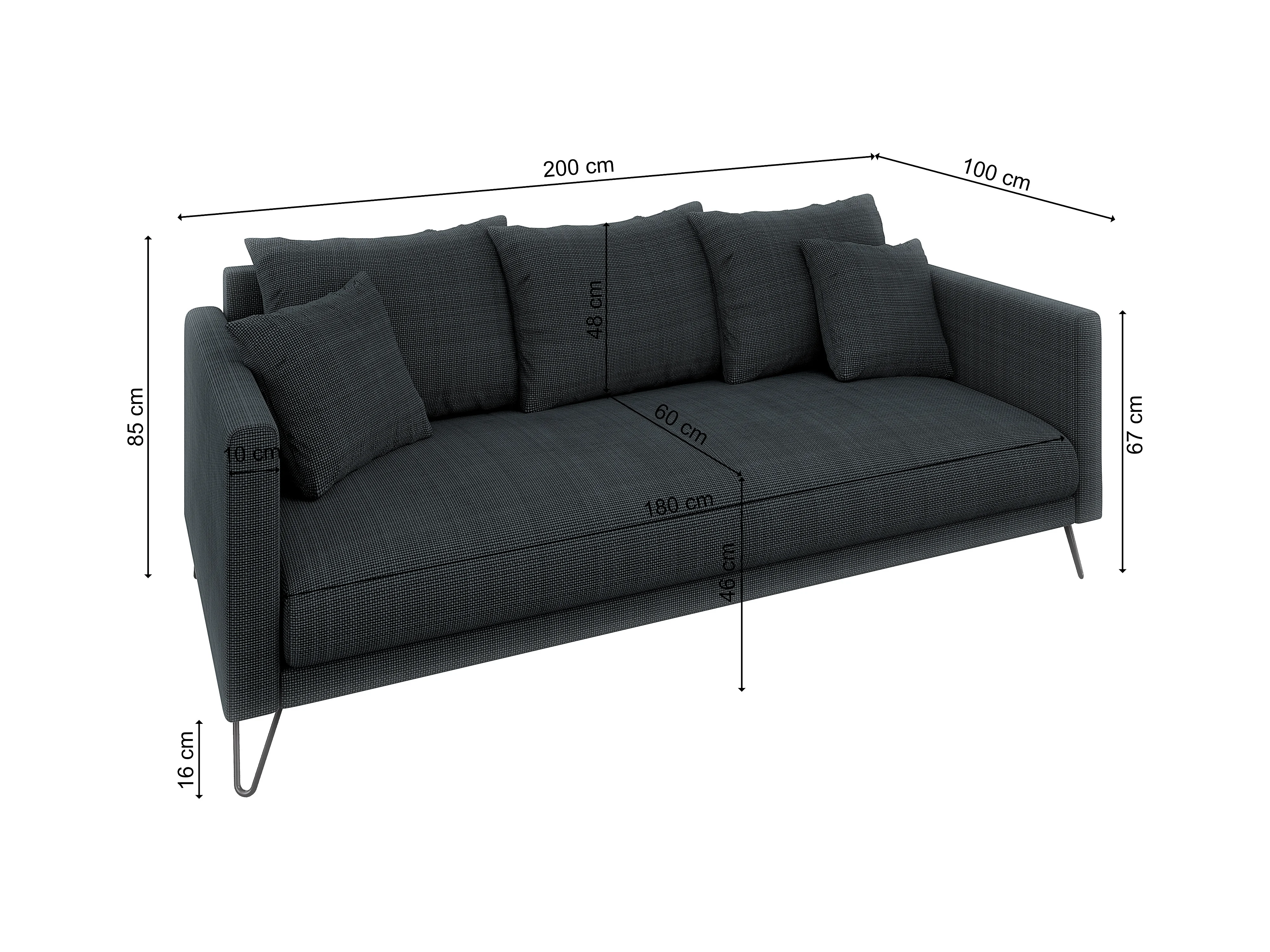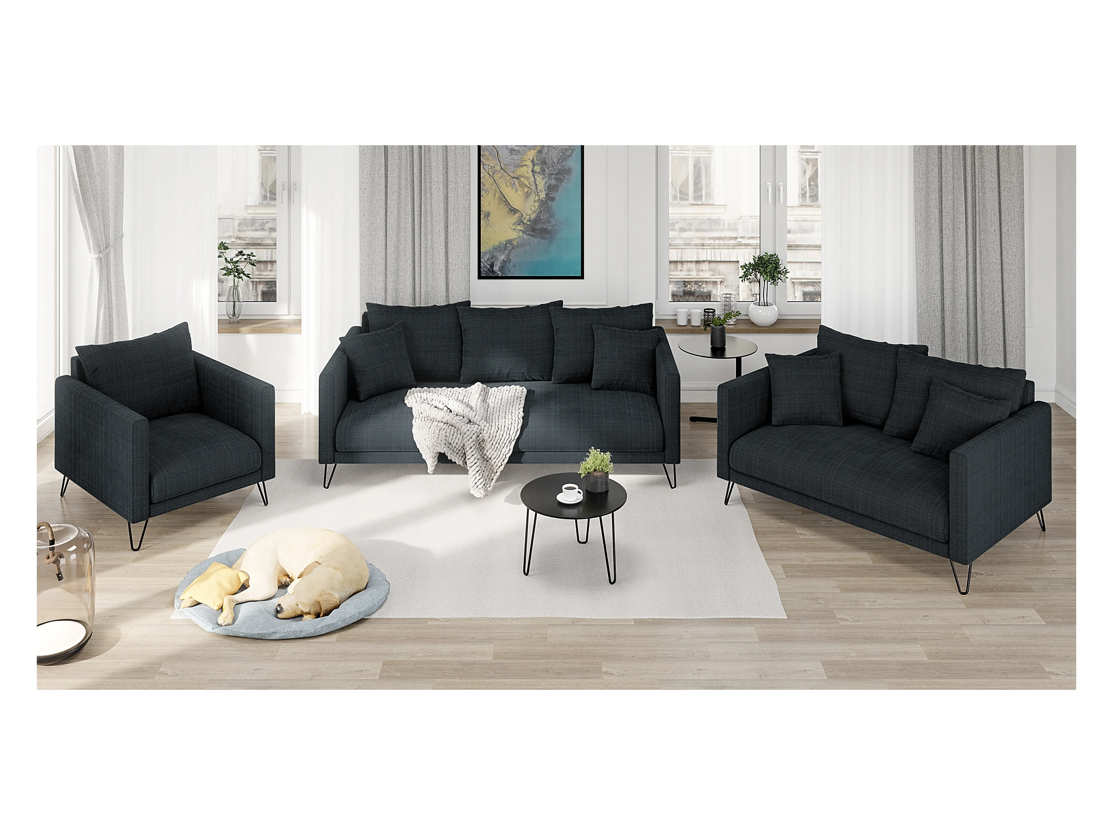 Harmony - Modernes Polstergarnitur 3+2+1 aus Graphit Chenille-Stoff mit Hohen Schwarzen Metallfüßen