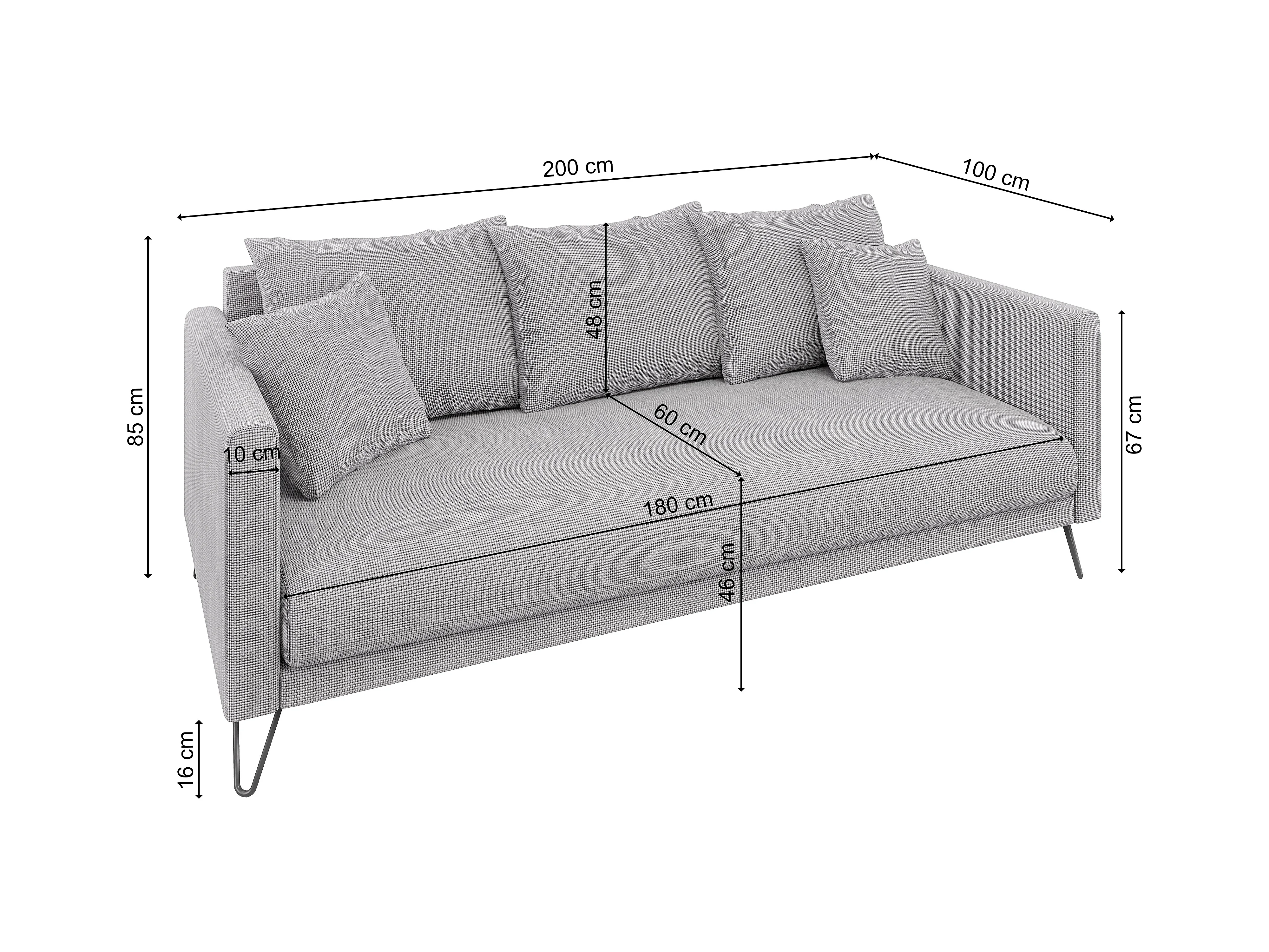 Harmony - Modernes Polstergarnitur 3+2+1 aus Hellgrau Chenille-Stoff mit Hohen Schwarzen Metallfüßen