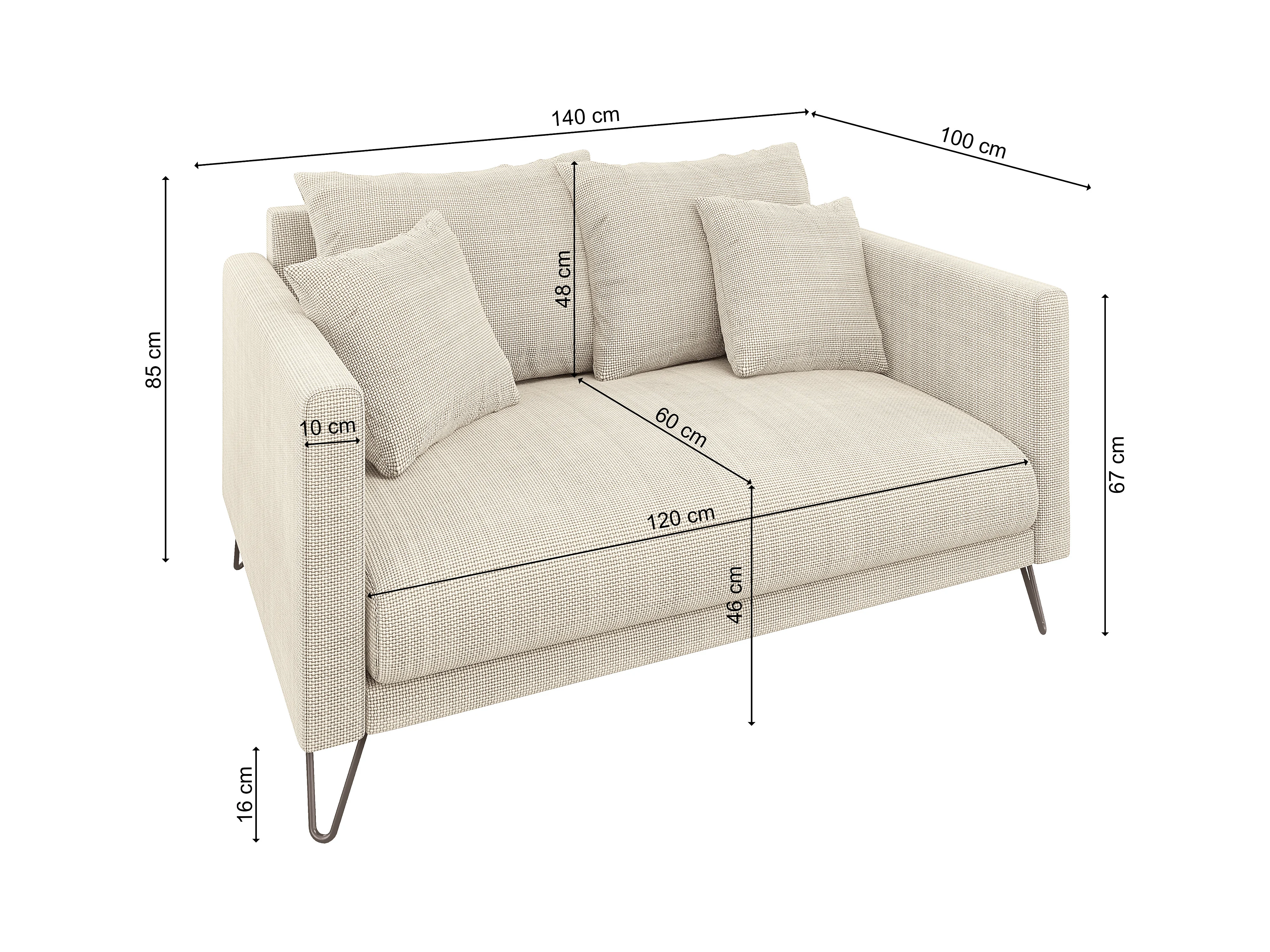 Harmony - Modernes Sofa 2-Sitzer aus Beige Chenille-Stoff mit Hohen Schwarzen Metallfüßen