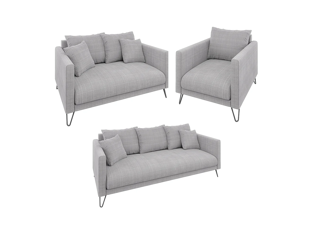 Harmony - Modernes Sofa 2-Sitzer aus Hellgrau Chenille-Stoff mit Hohen Schwarzen Metallfüßen