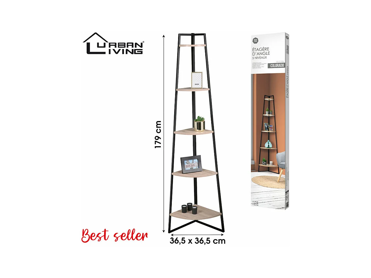 Eckregal mit 5 Etagen im Holzdekor H180 cm - Colorado
