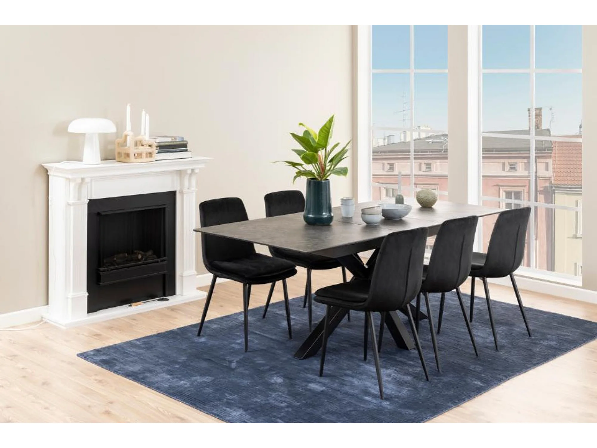 Heaven Esstisch grob Keramik, inkl. 1 Zusatzplatte, 90x168/210cm schwarz.