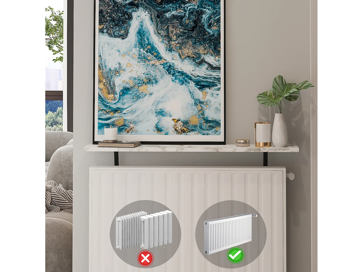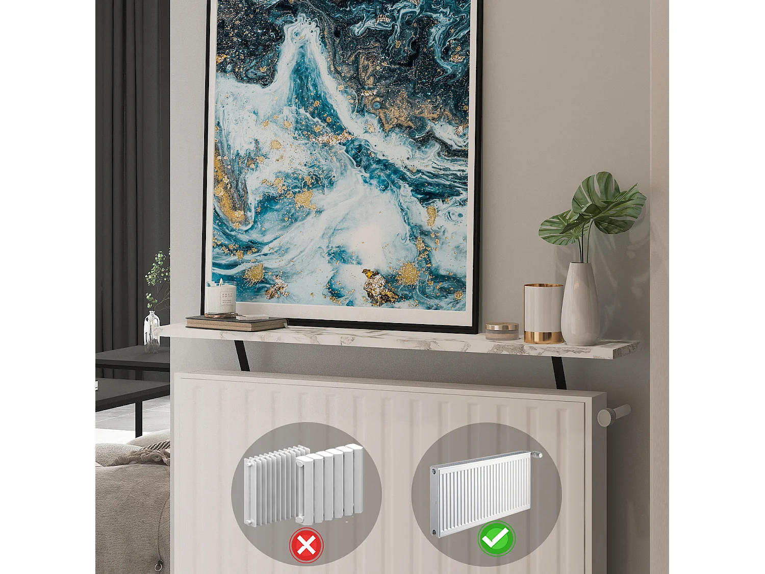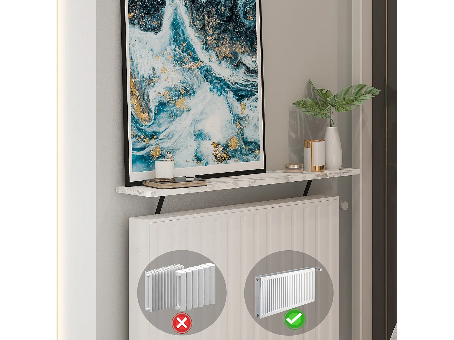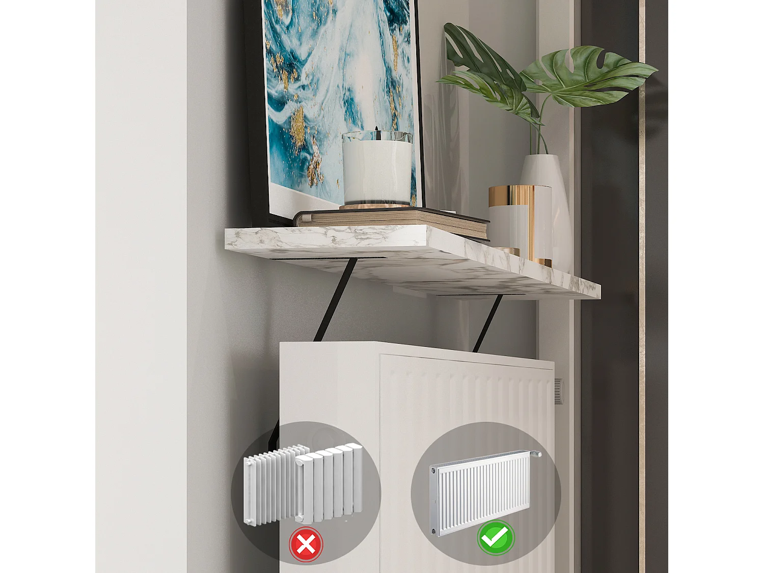 Heizkörperregal Adin Weiß Marmoroptik 110cm ohne bohren 92666