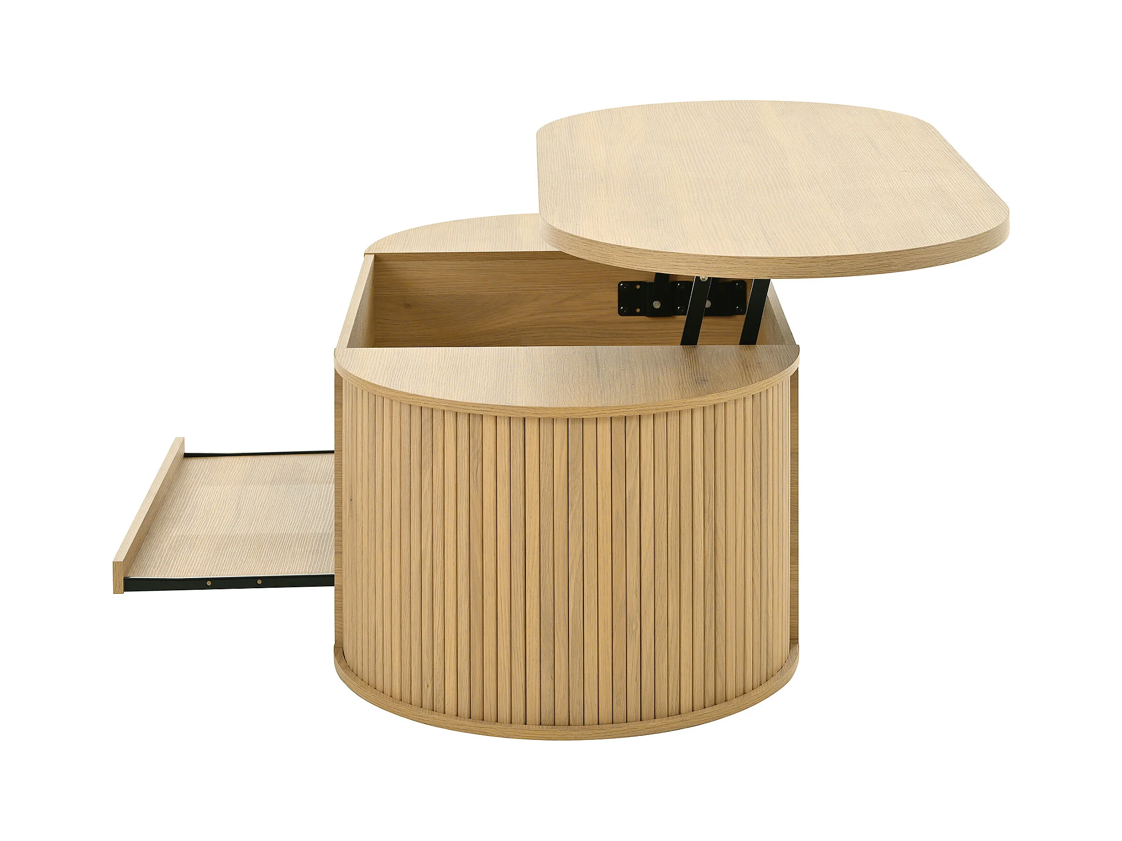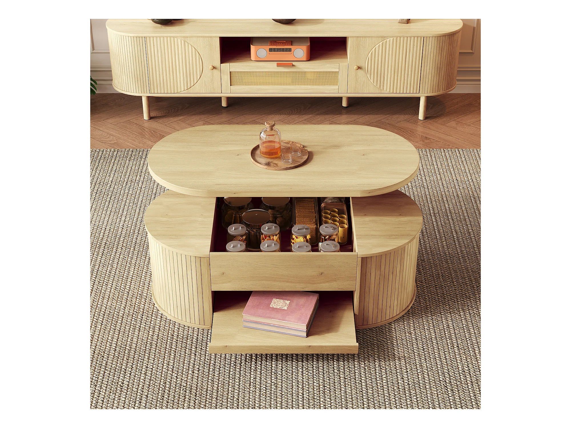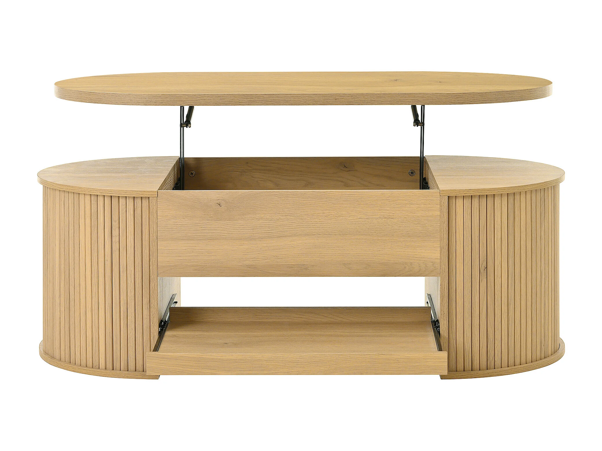 Heller Couchtisch aus Naturholz mit anhebbarer Platte und ausziehbarer Ablage – ideal für Wohn- und Arbeitszimmer