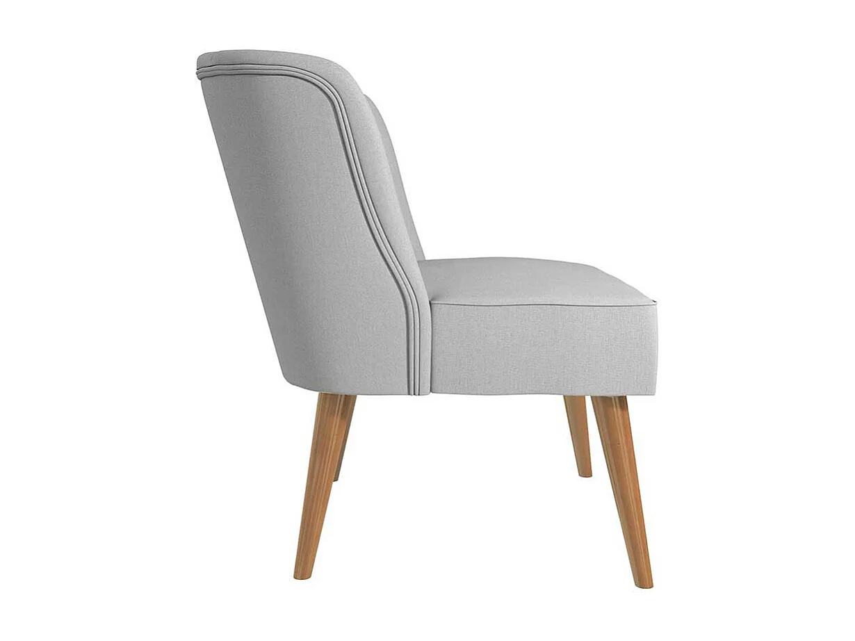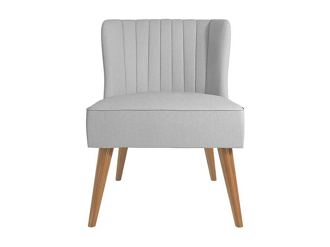 Hellgrauer Einzelsessel im Retrostil Vierfußgestell aus Holz