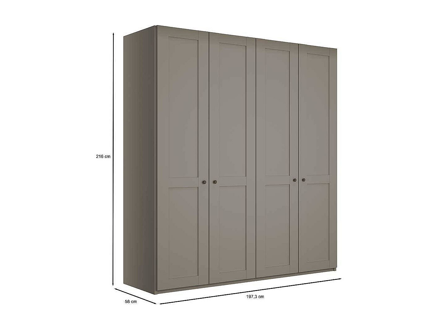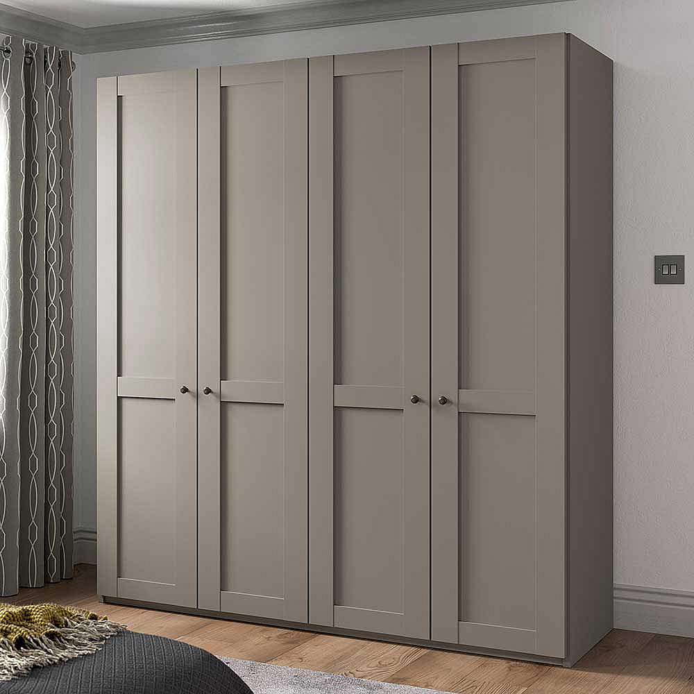 Hellgrauer Schlafzimmerschrank 200 cm breit 4 Drehtüren