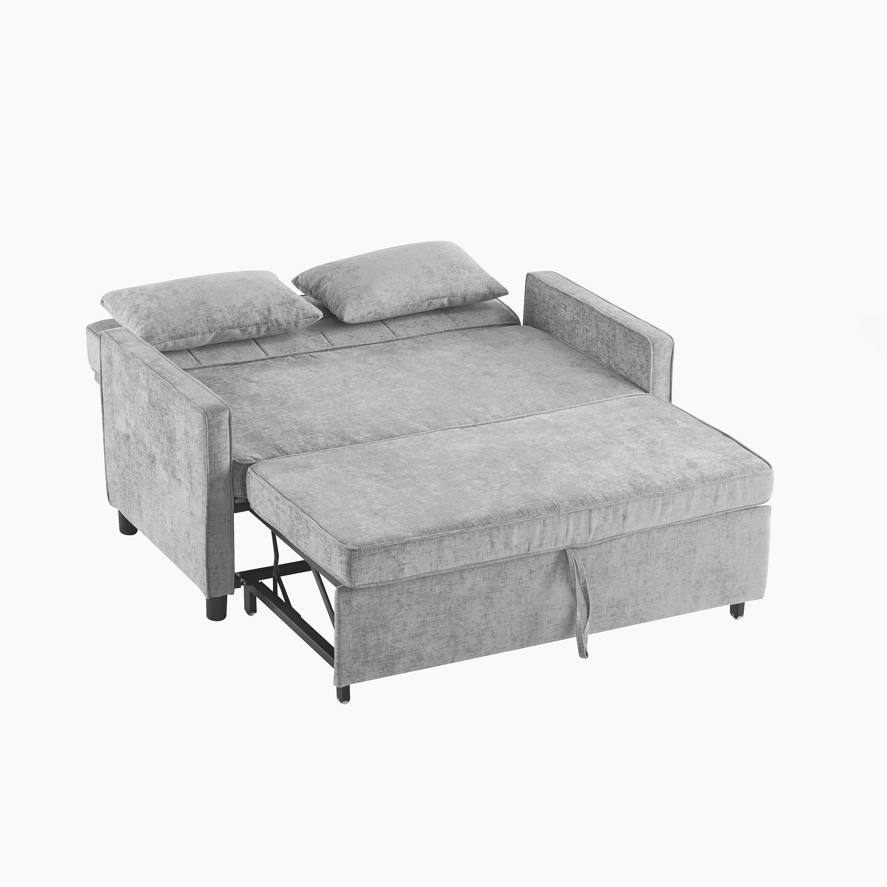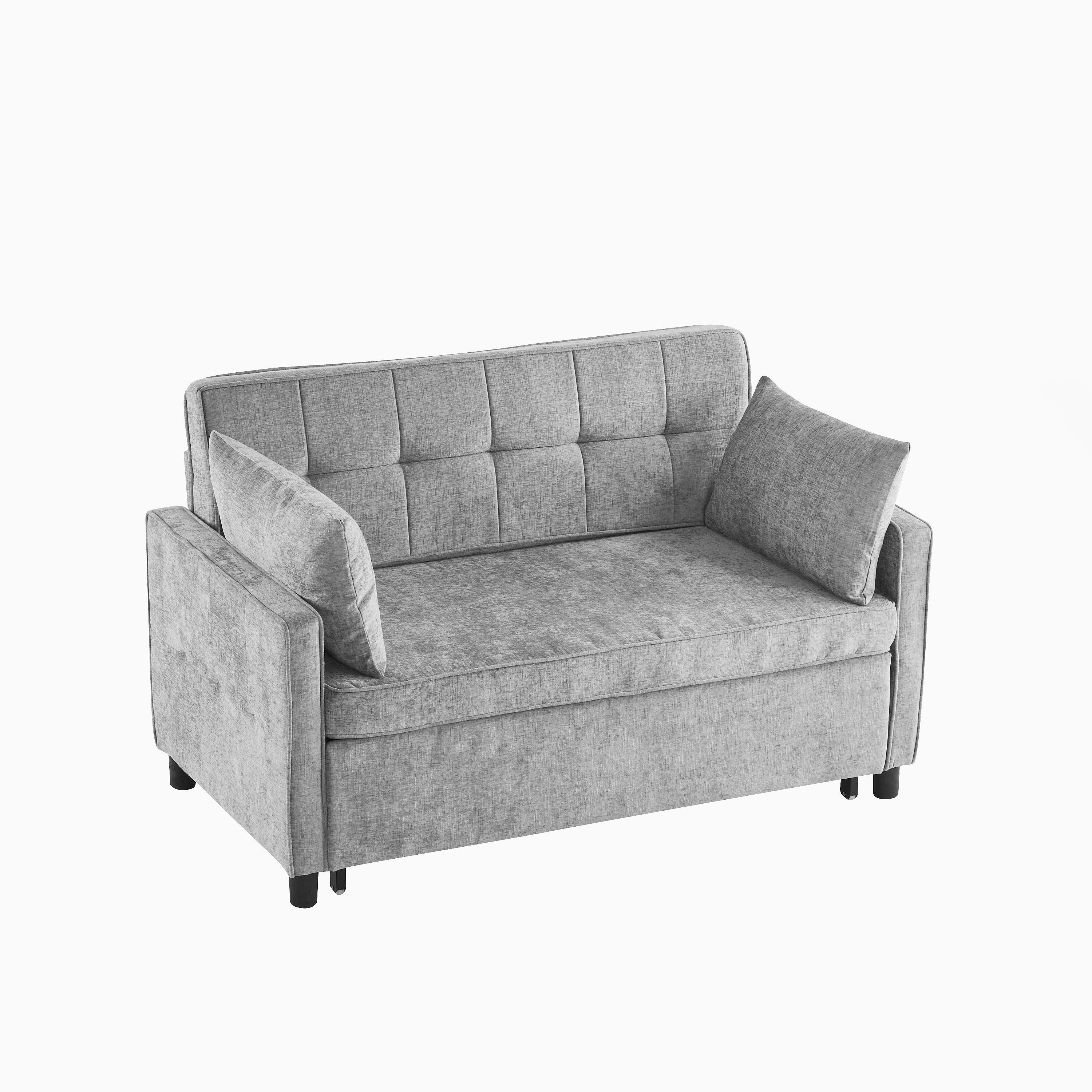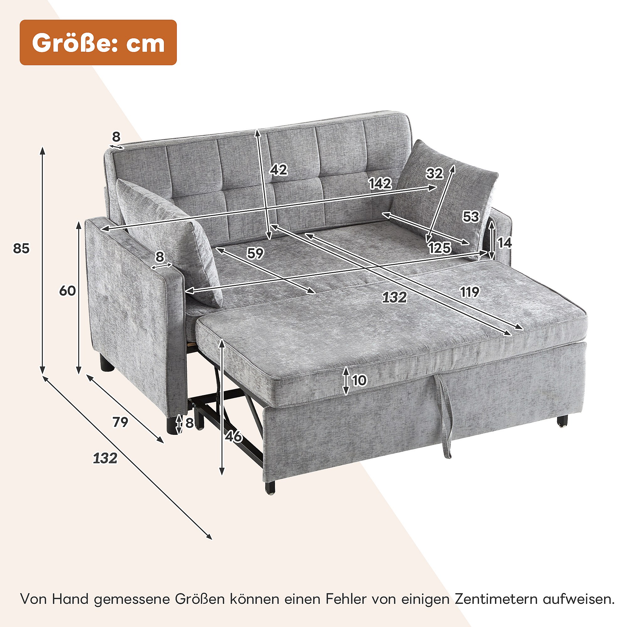Hellgraues 2-Sitzer-Sofa - Wohnzimmersofa mit verstellbarer Rückenlehne und Ausziehbettfunktion - 2 Kissen und Armlehnen - Chenille