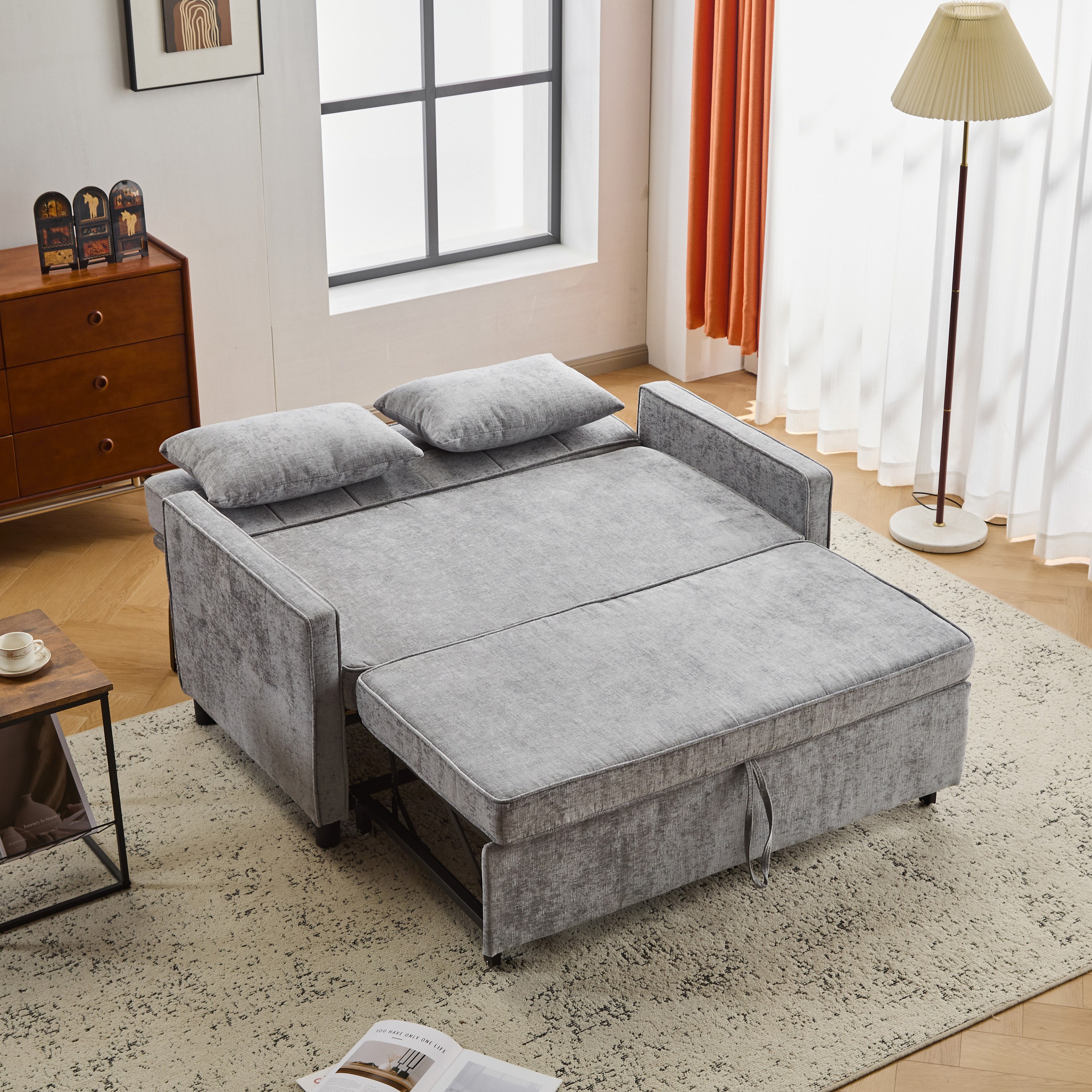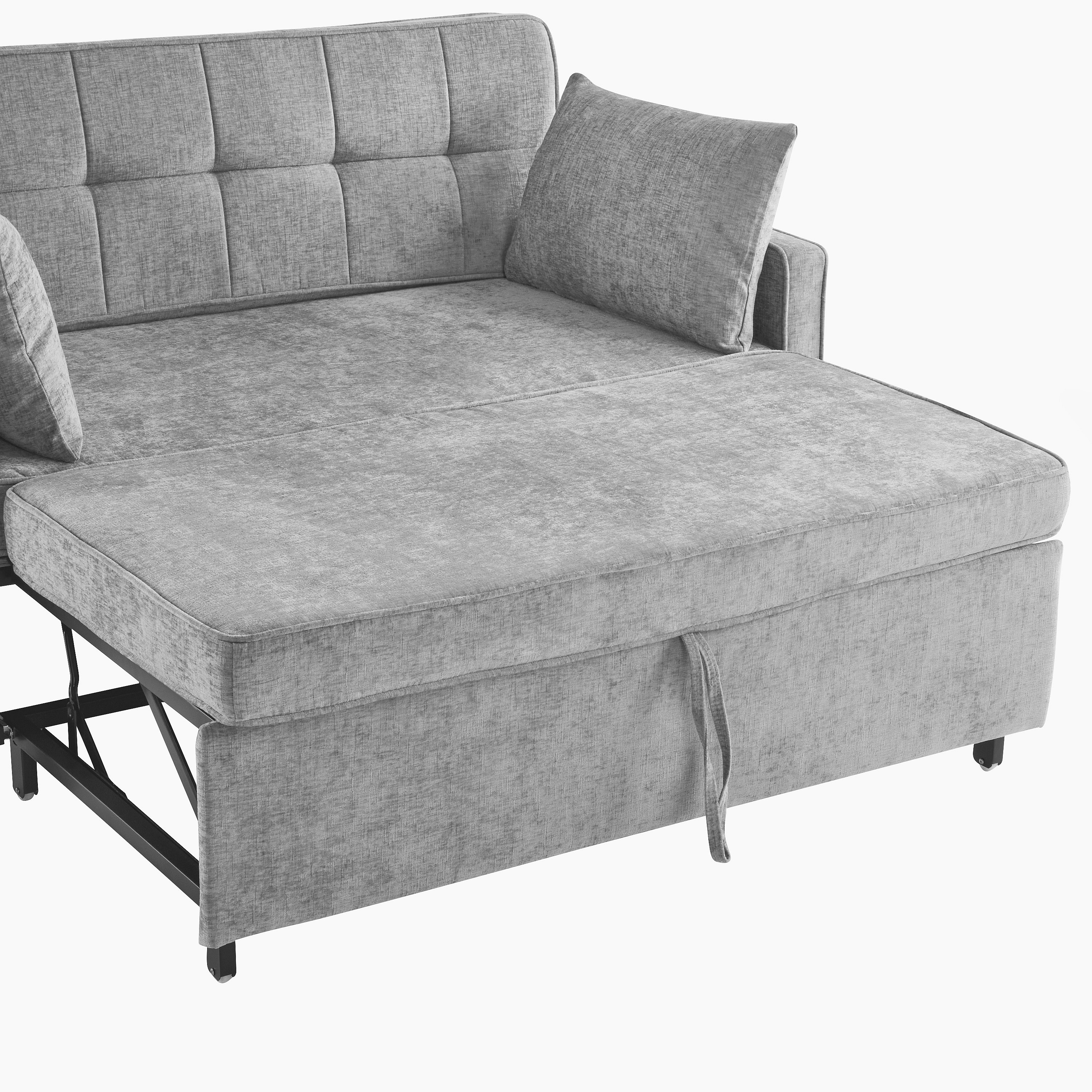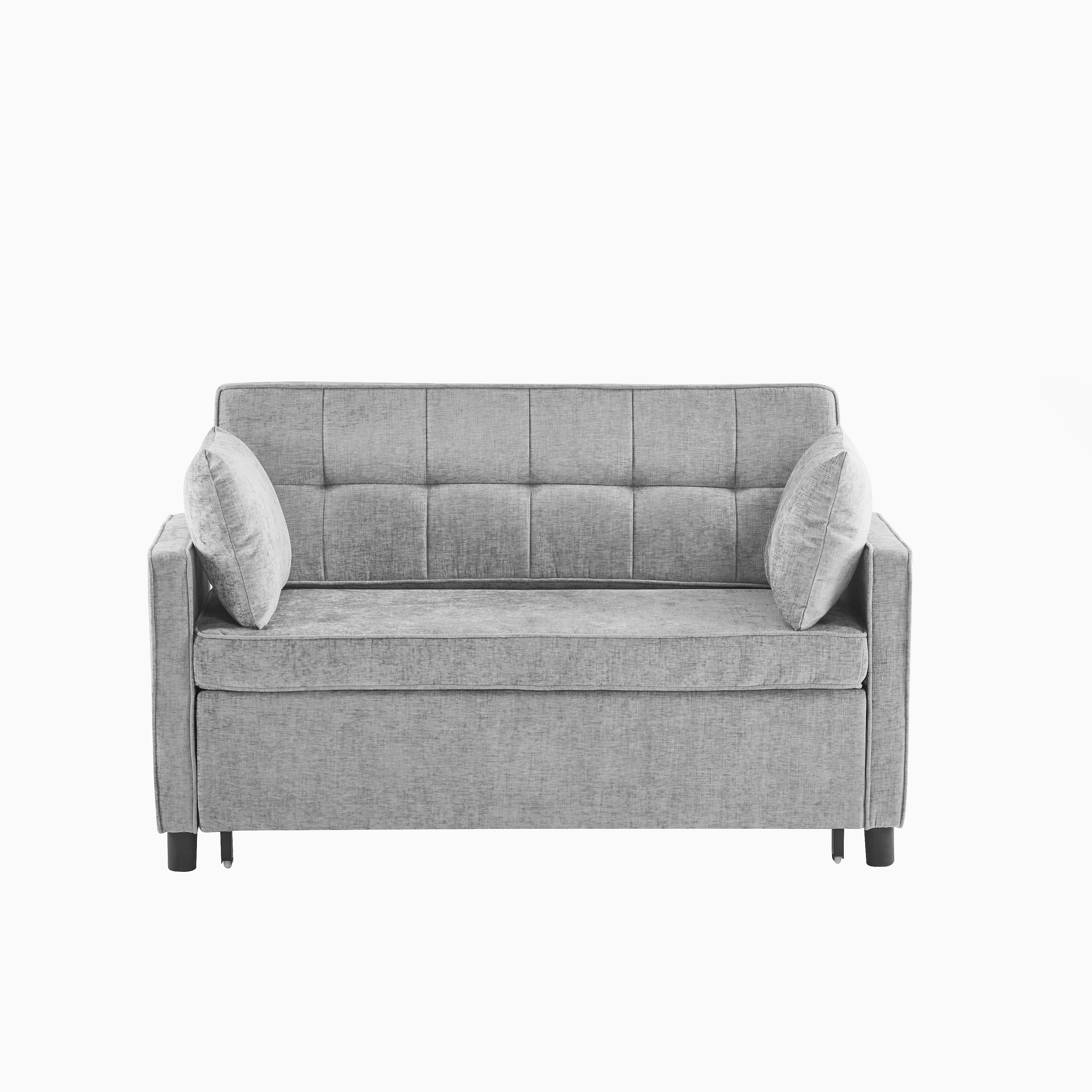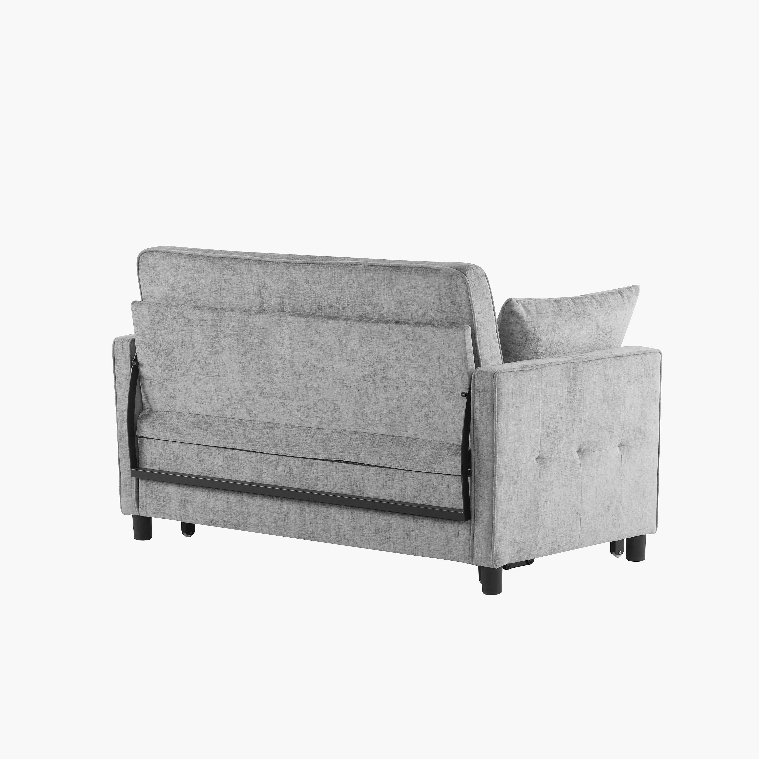 Hellgraues 2-Sitzer-Sofa - Wohnzimmersofa mit verstellbarer Rückenlehne und Ausziehbettfunktion - 2 Kissen und Armlehnen - Chenille