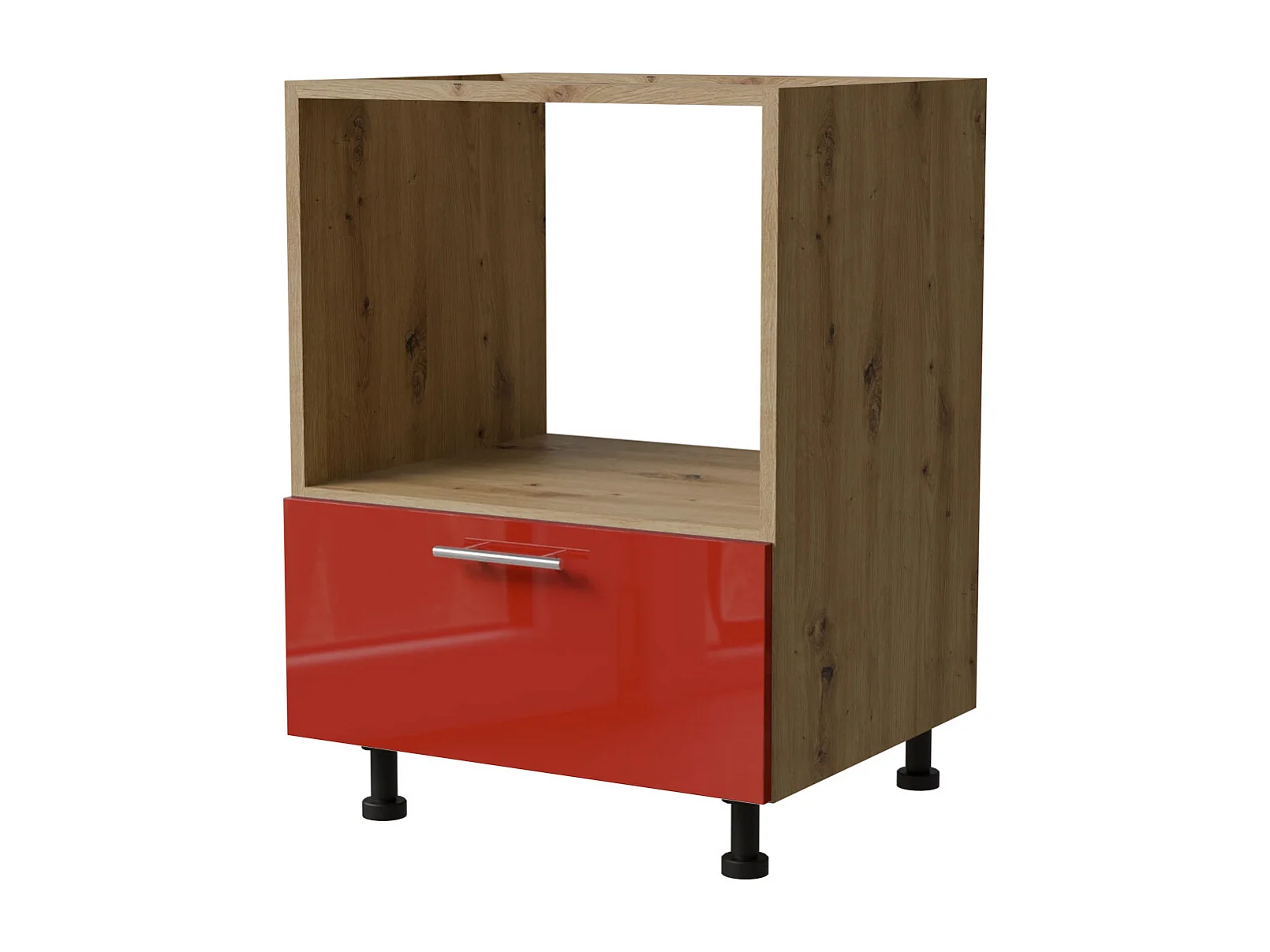 HERDUMBAUSCHRANK Brerra D11K/60 Kompakt RAL 3002 karminrot Hochglanz / Eiche Artisan Matt 60 / 50 / 82cm