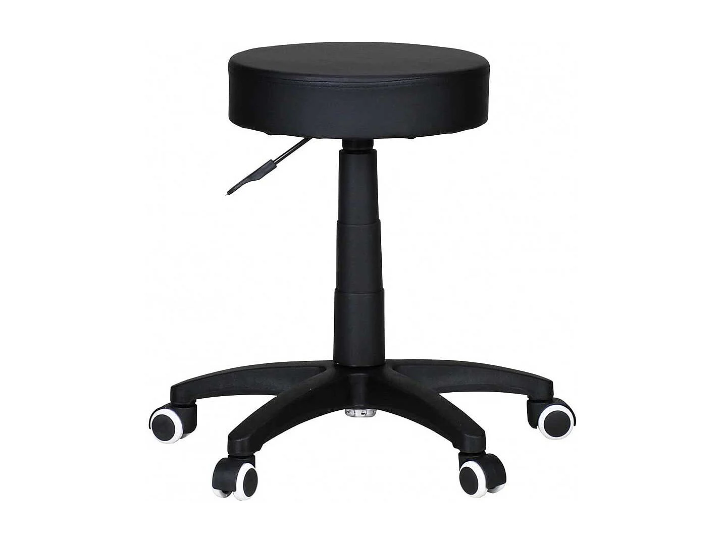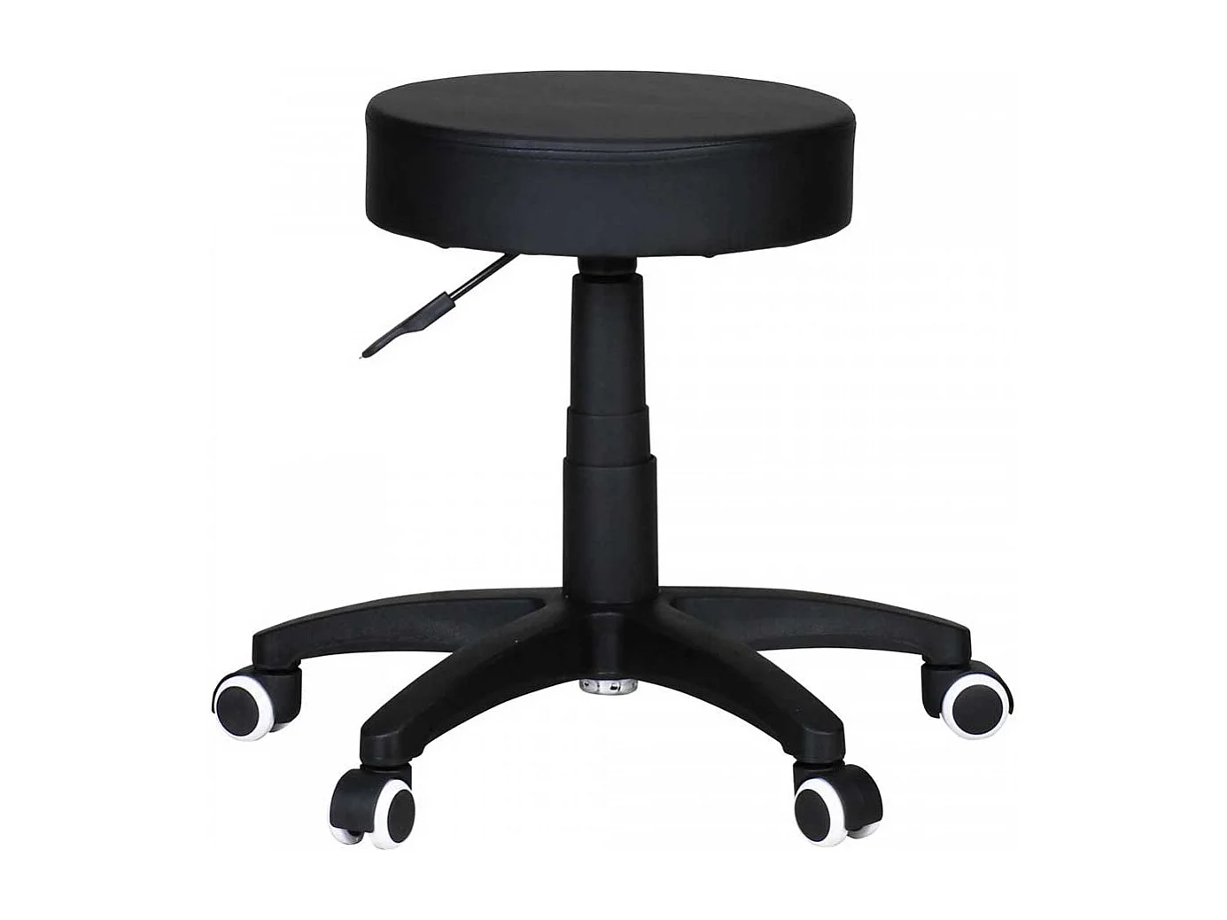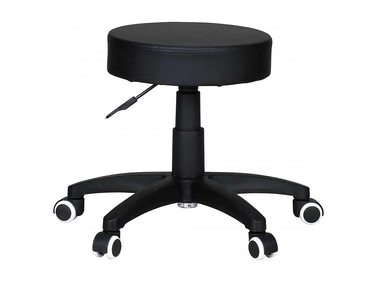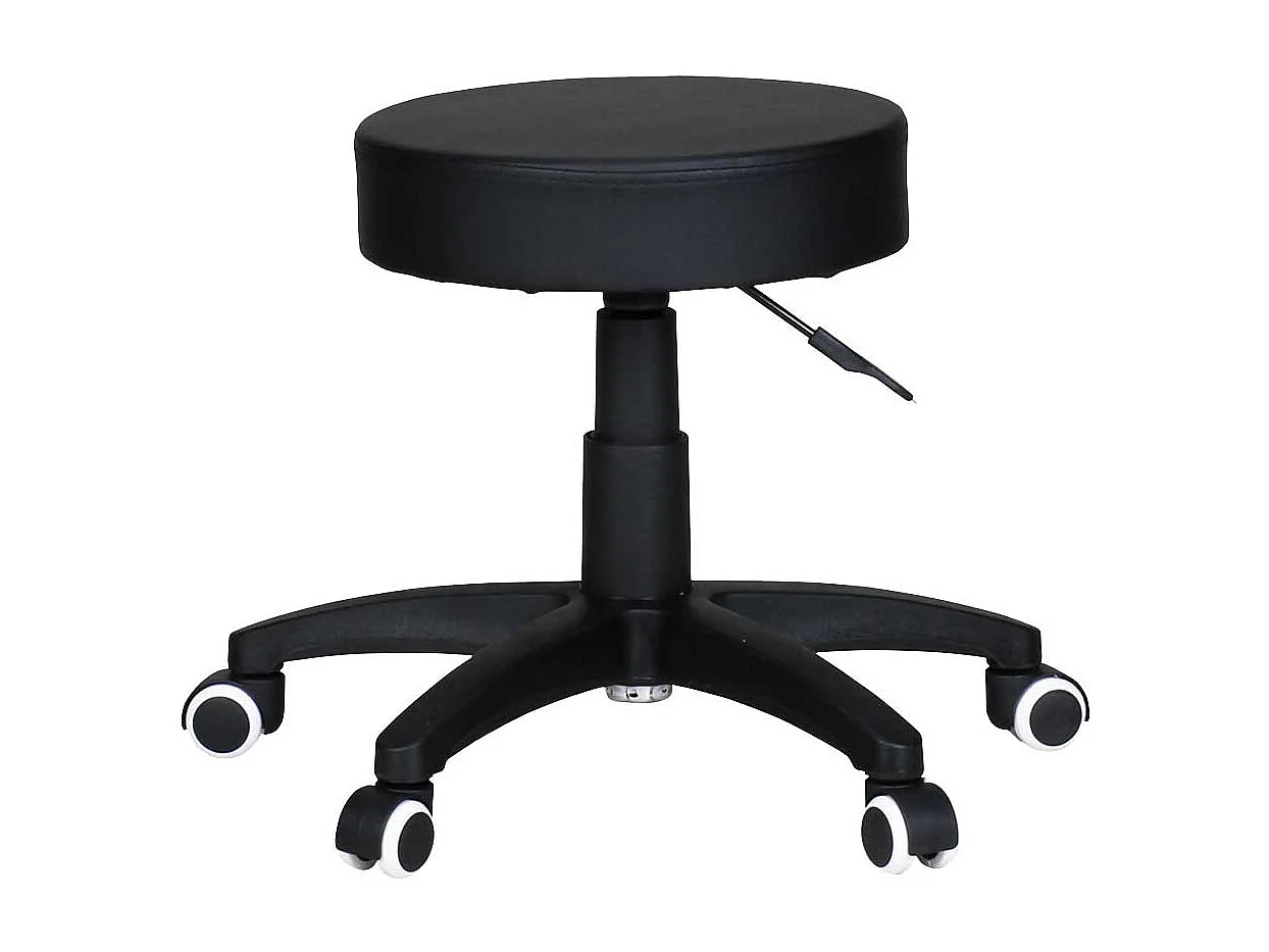 Höhenverstellbarer Arbeitshocker in Schwarz Kunstleder Rollen