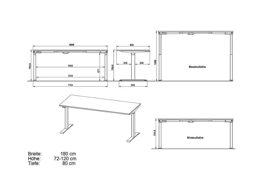 Höhenverstellbarer Schreibtisch Büroschreibtisch Made in Germany - 80 cm tief