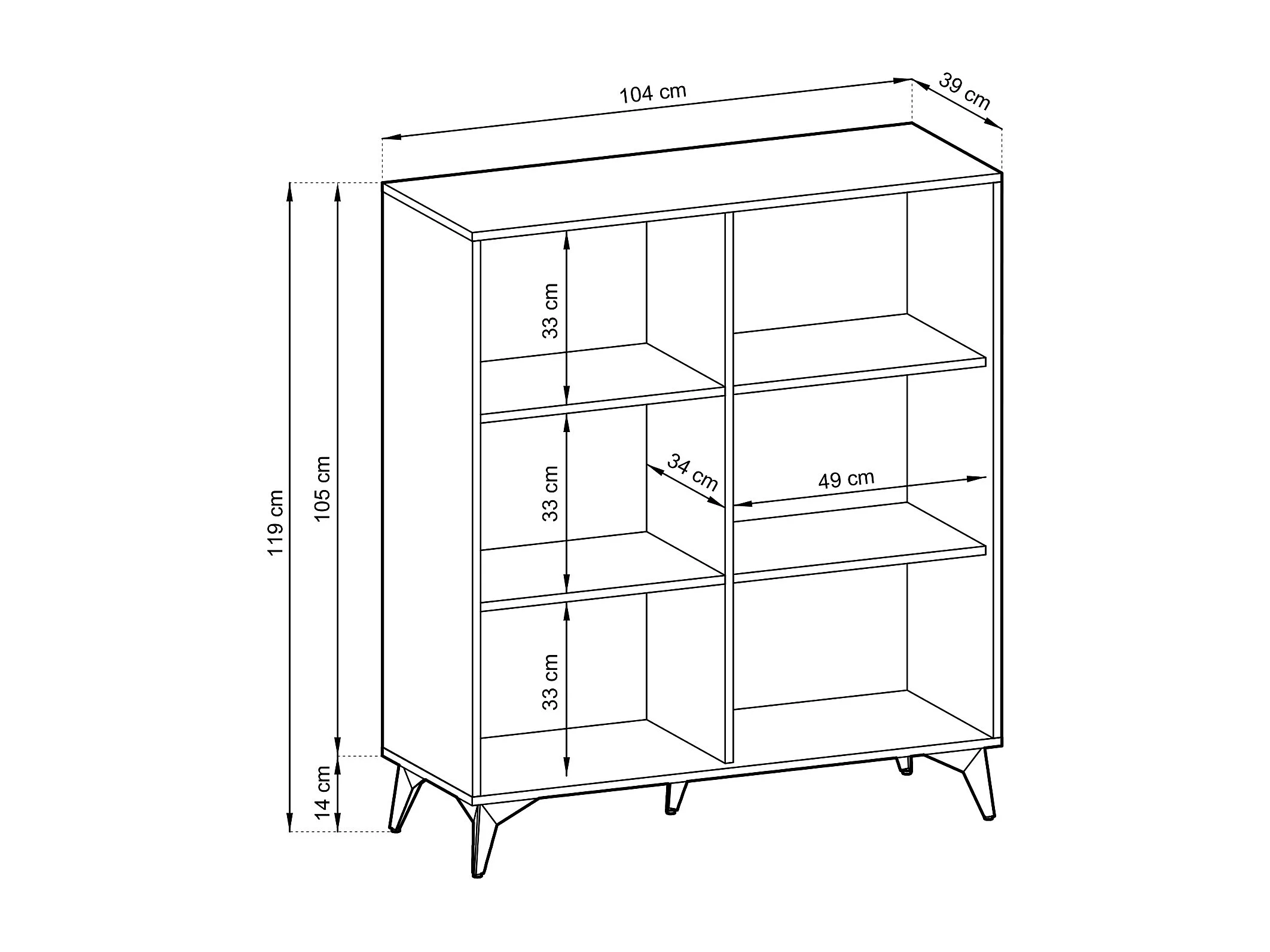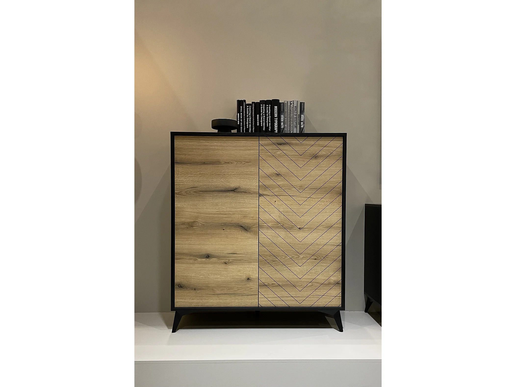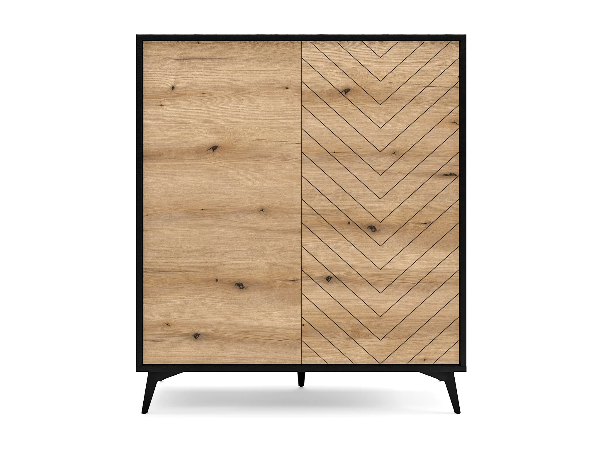 Hohe Kommode mit zwei Türen - 104 cm - Schwarz/Eiche Evoke Fischgrätmuster - BOULIA
