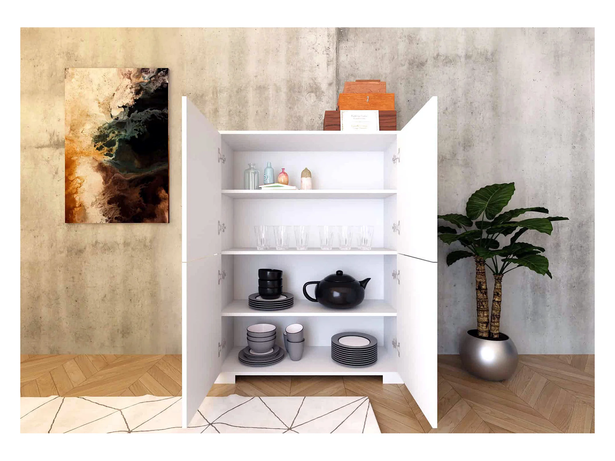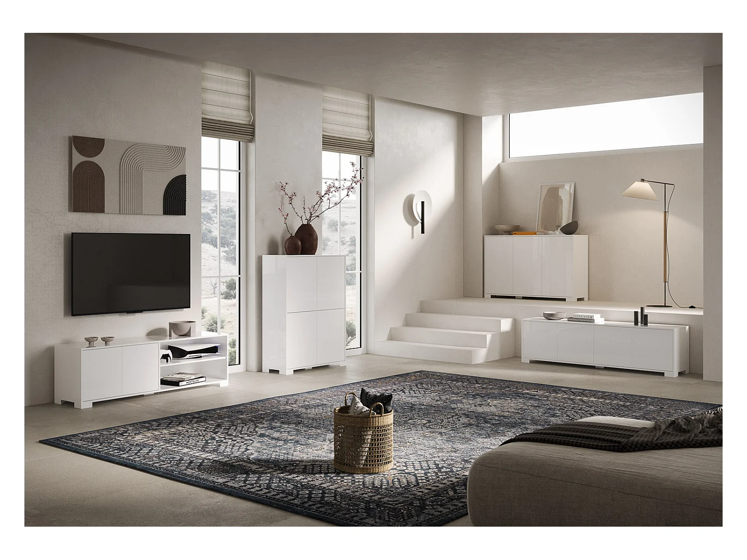 Hohes Sideboard 4 Türen 90x35x120 cm Lumina glänzend weiß