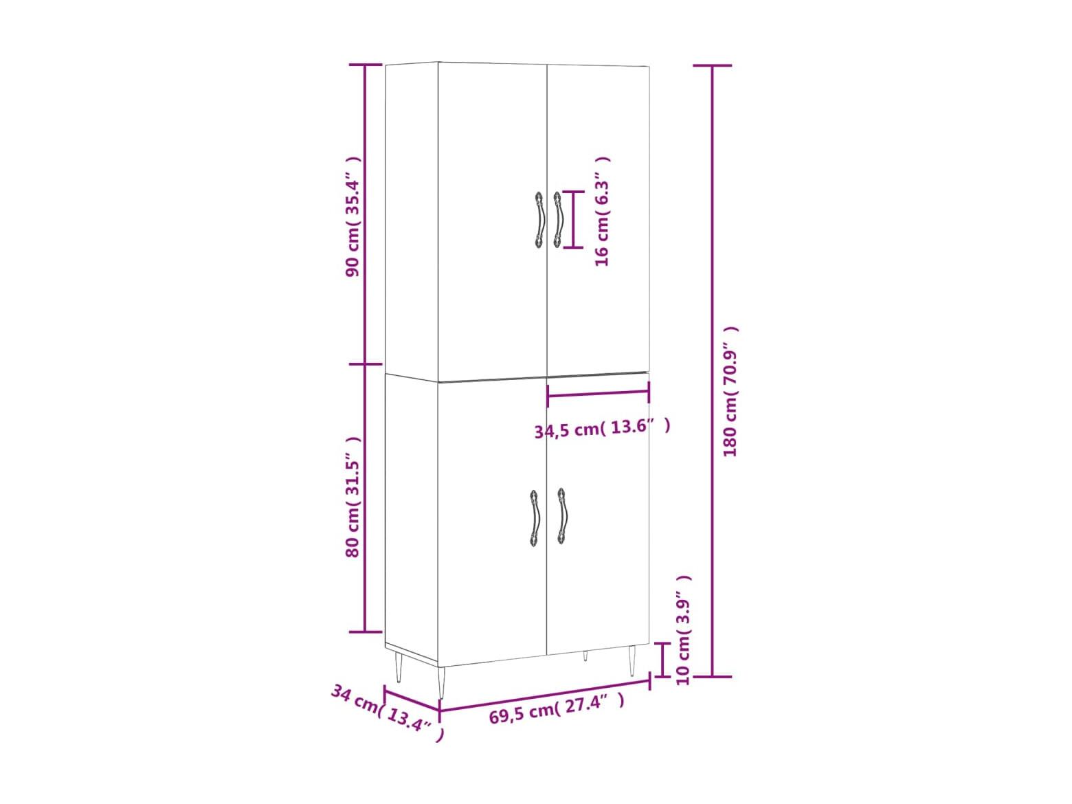 Highboard Betongrau 69,5x34x180 cm Holzwerkstoff