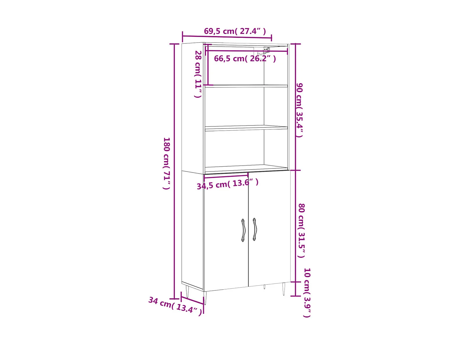 Highboard Betongrau 69,5x34x180 cm Holzwerkstoff