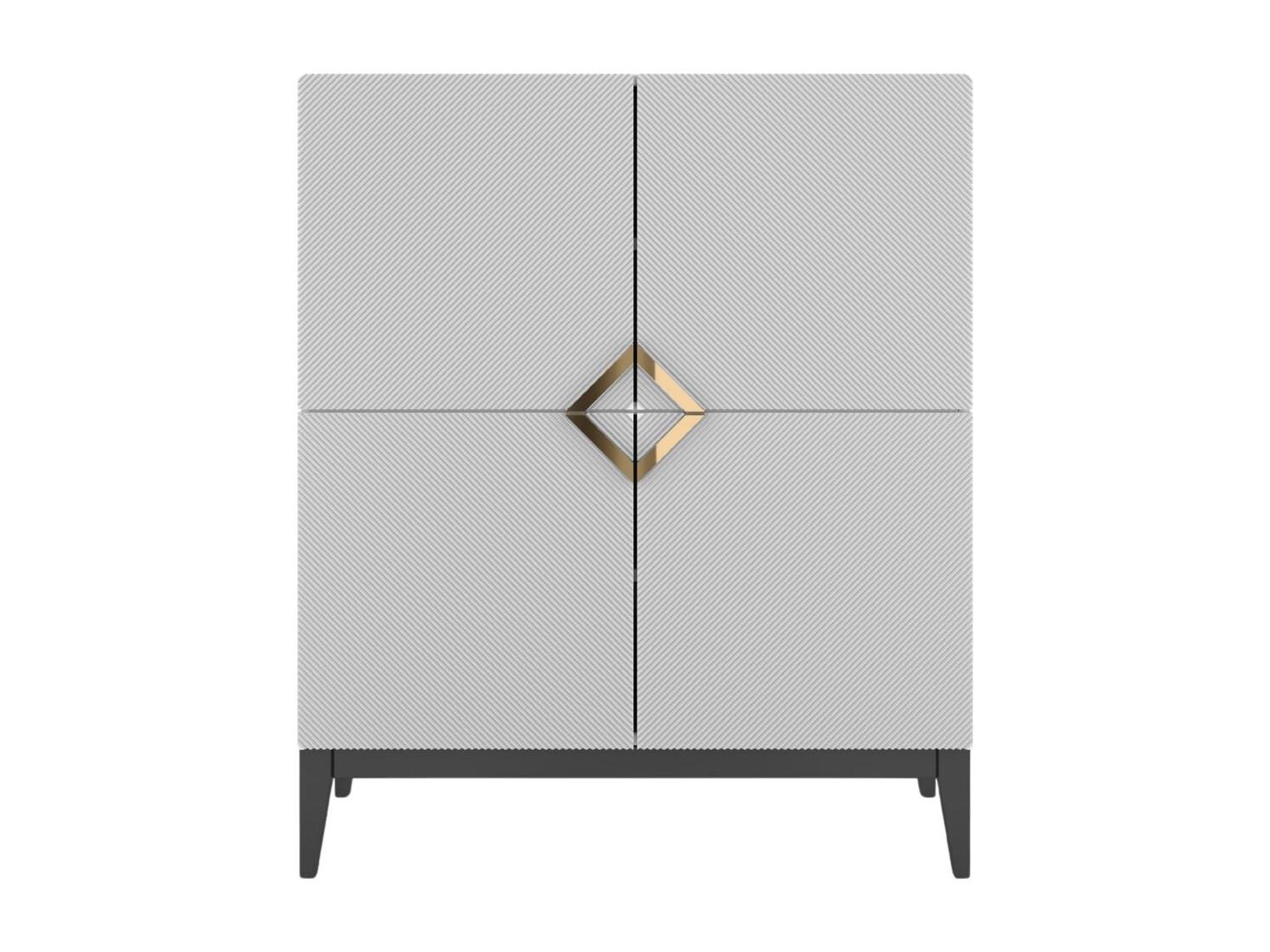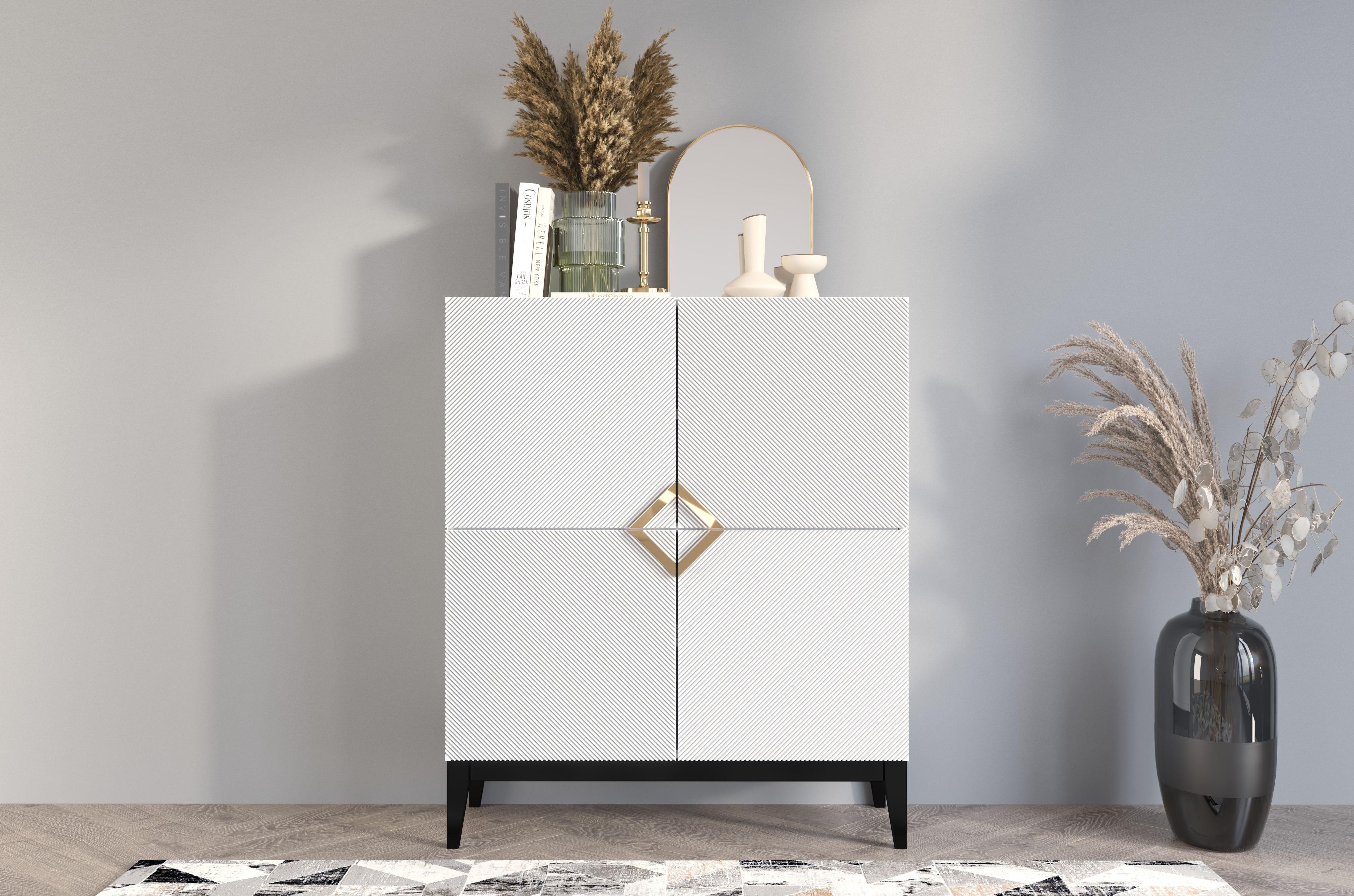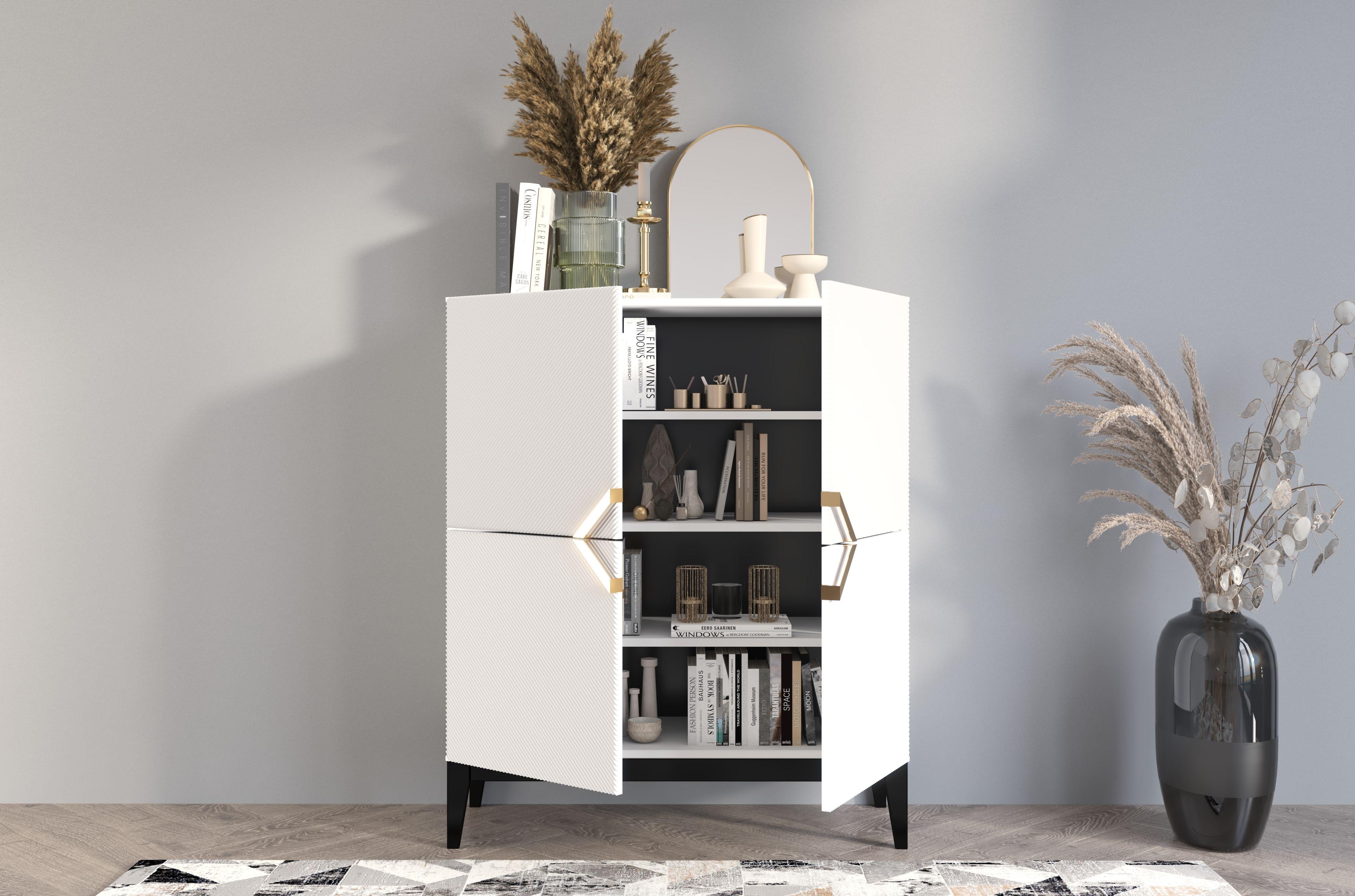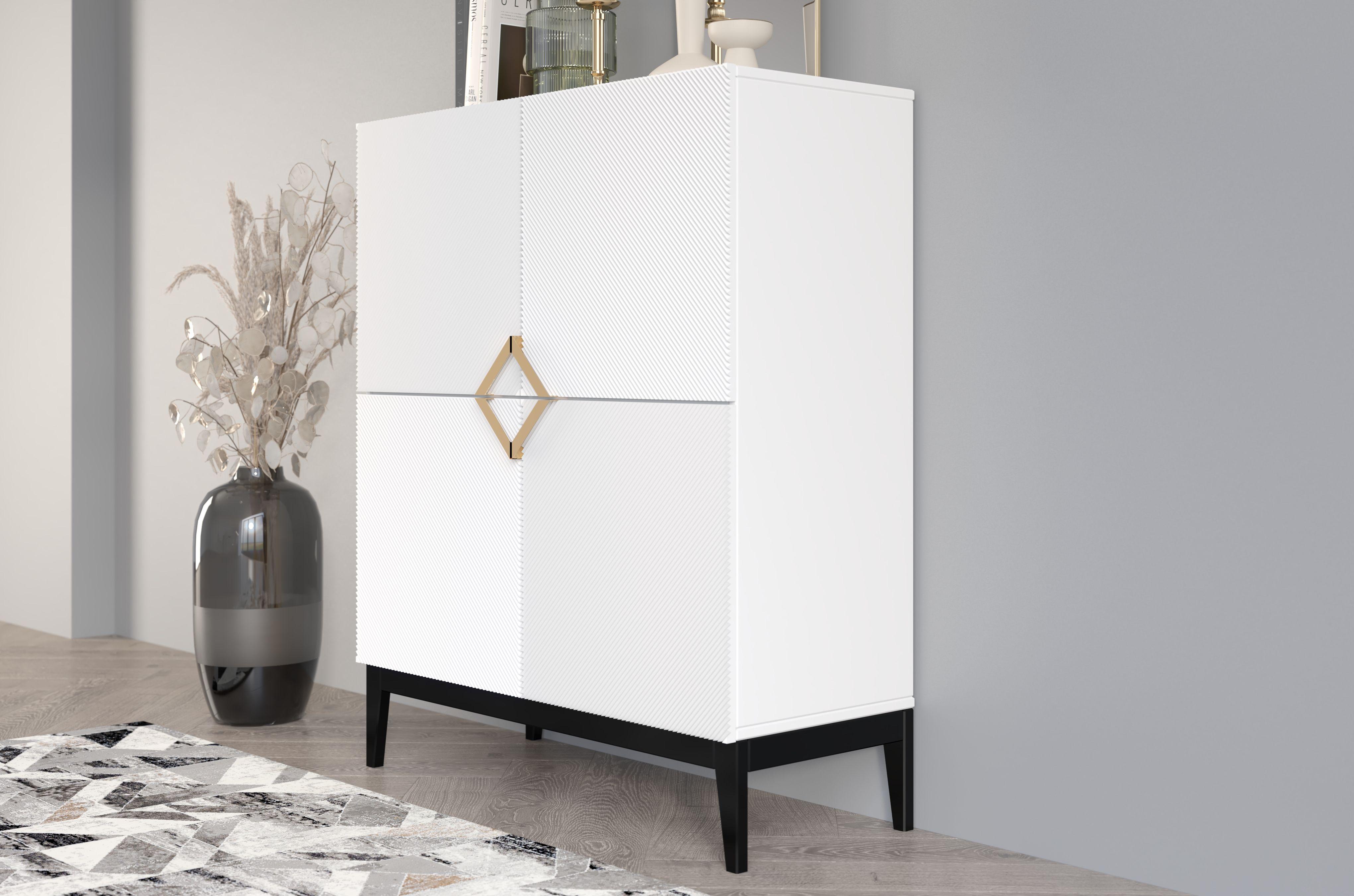 Highboard Demi high, weiß-schwarz-gold, mit gefrästen fronten, massive buche