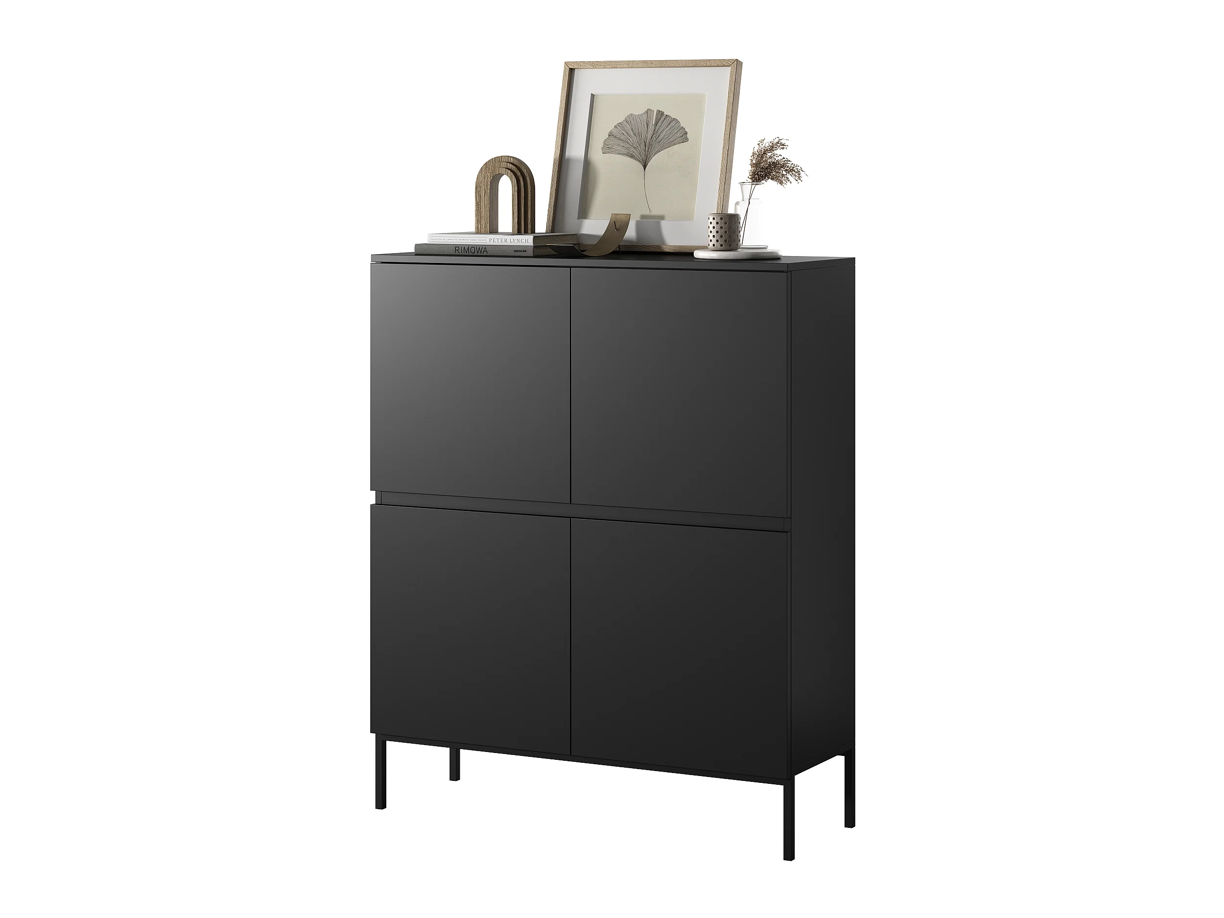 Highboard Hochkommode 4-türig, Schwarz, 100 cm - Bemmi