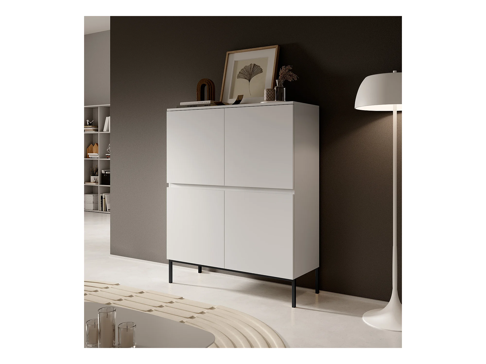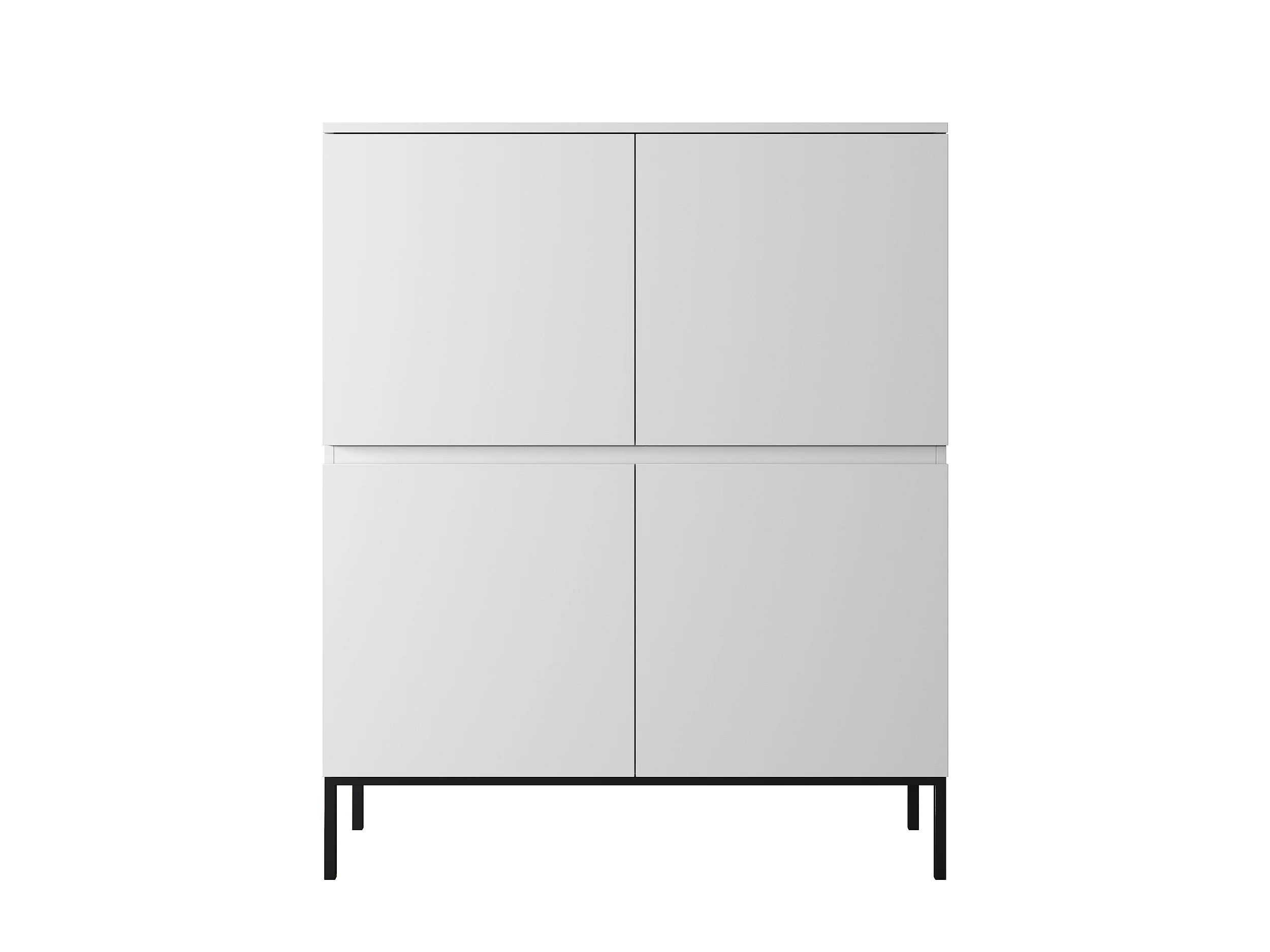 Highboard Hochkommode 4-türig, Weiß mit schwarzen Beinen, 100 cm - Bemmi