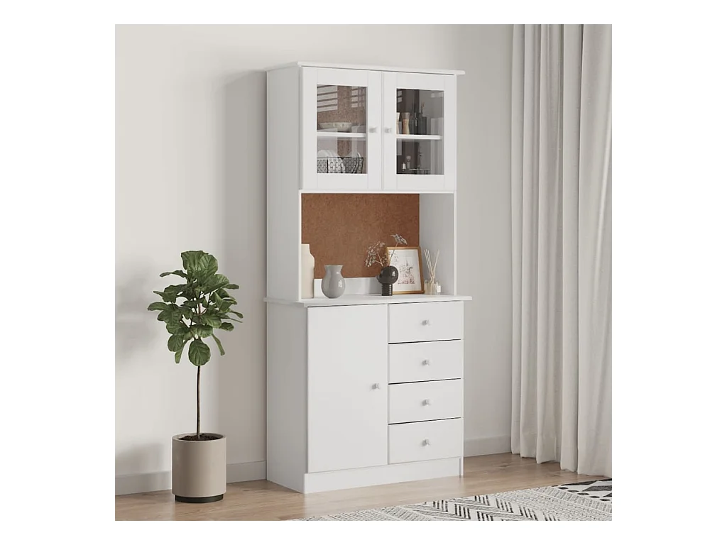 Highboard,Kommode ALTA Weiß 77x35x165 cm Massivholz Kiefer -gkd531340