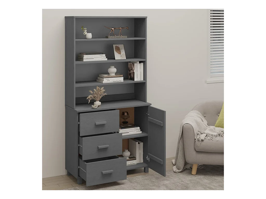 Highboard,Kommode HAMAR Massivholz Kiefer Dunkelgrau -gkd581812