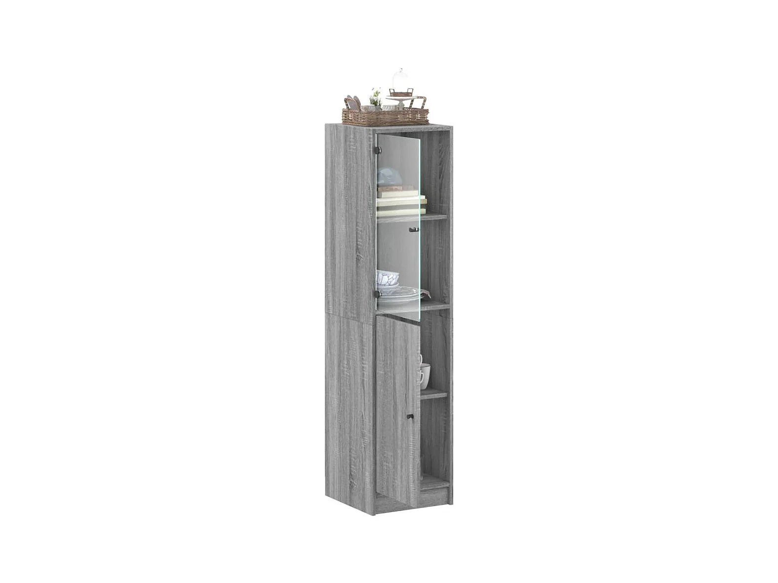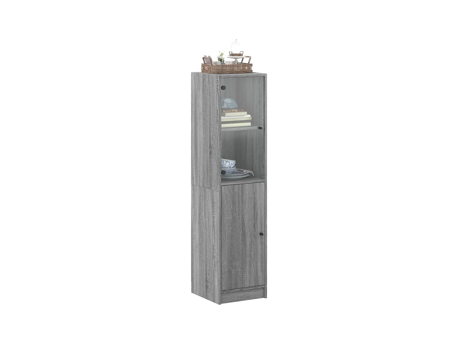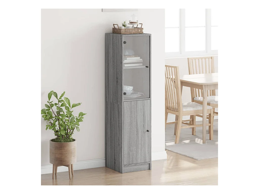 Highboard,Kommode mit Glastür Grau Sonoma 35x37x142 cm -gkd947186