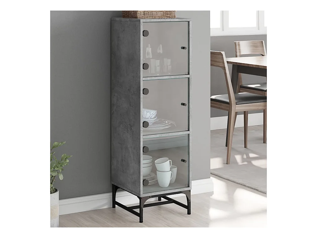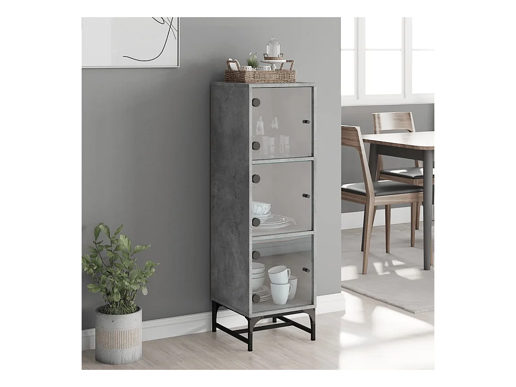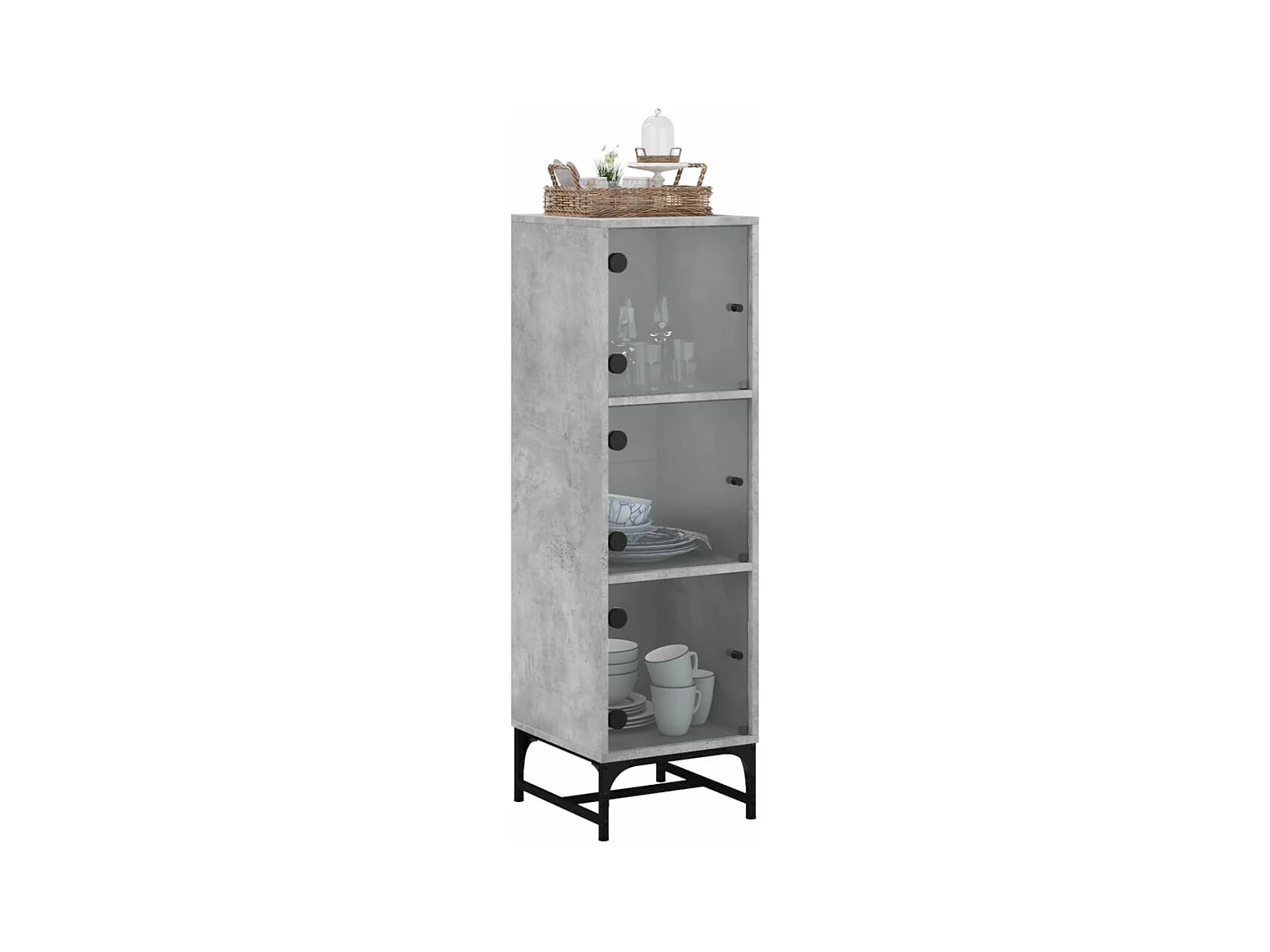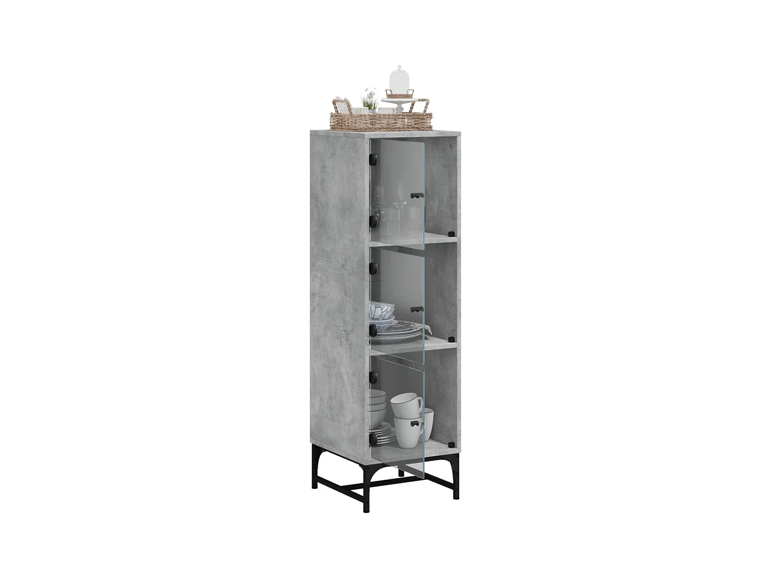 Highboard,Kommode mit Glastüren Betongrau 35x37x120 cm -gkd287315