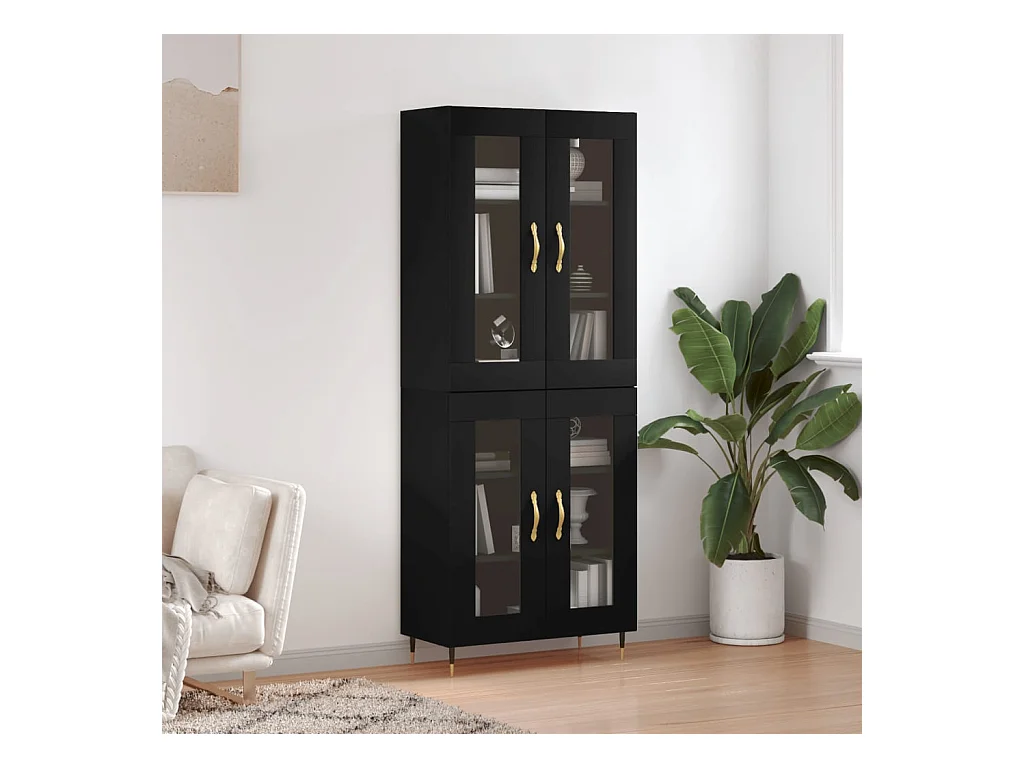 Highboard,Kommode Schwarz 69,5x34x180 cm Holzwerkstoff -gkd370221