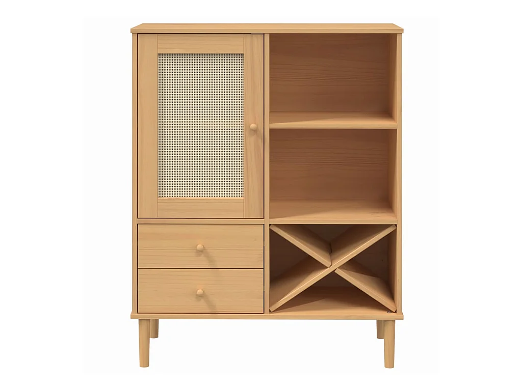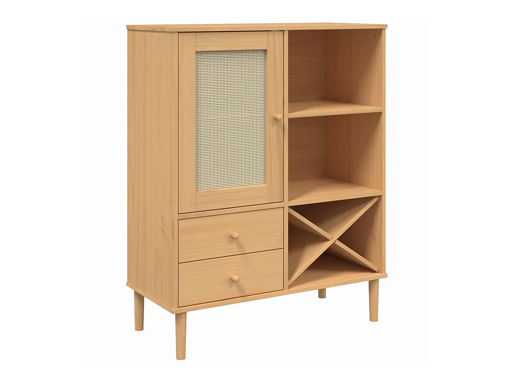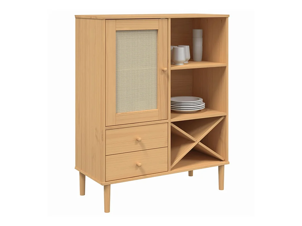 Highboard,Kommode SENJA Rattan-Optik Braun 90x40x112 cm Kiefernholz -gkd990098