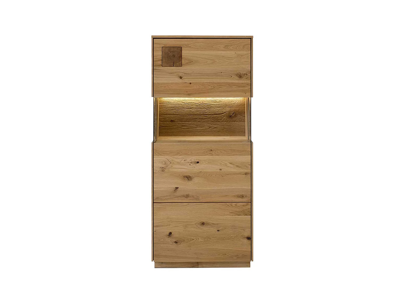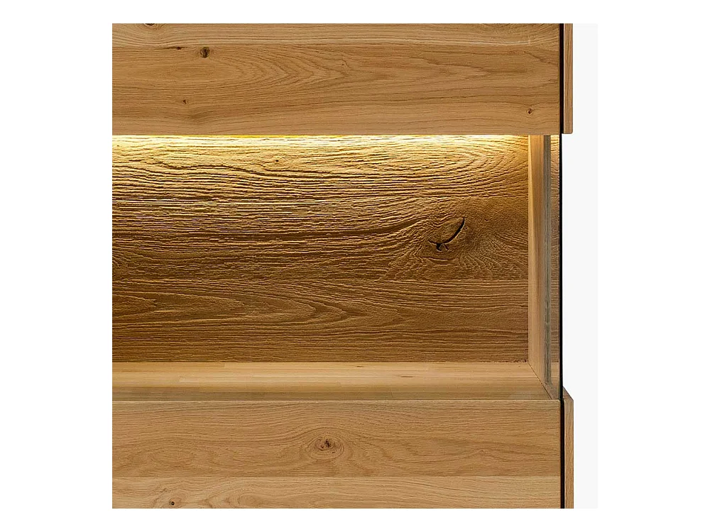 Highboard mit Glas Seiten aus Wildeiche Massivholz 145 cm hoch