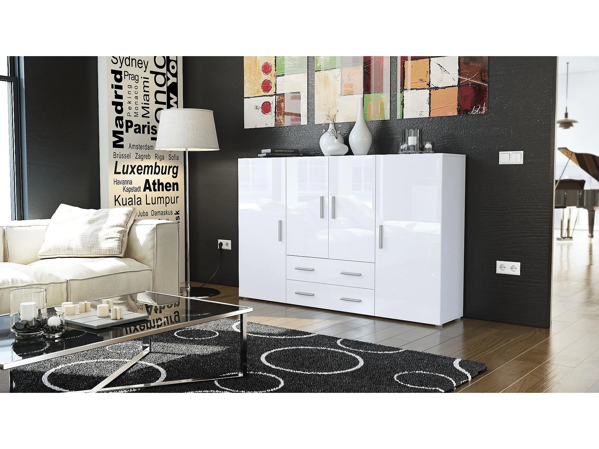 HIGHBOARD Nora Front in Weiß Hochglanz