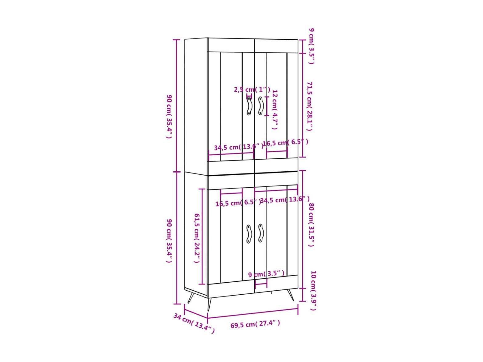 Highboard Räuchereiche 69,5x34x180 cm Holzwerkstoff