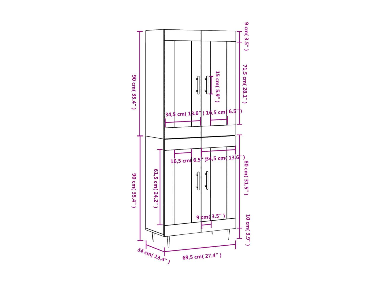Highboard Räuchereiche 69,5x34x180 cm Holzwerkstoff