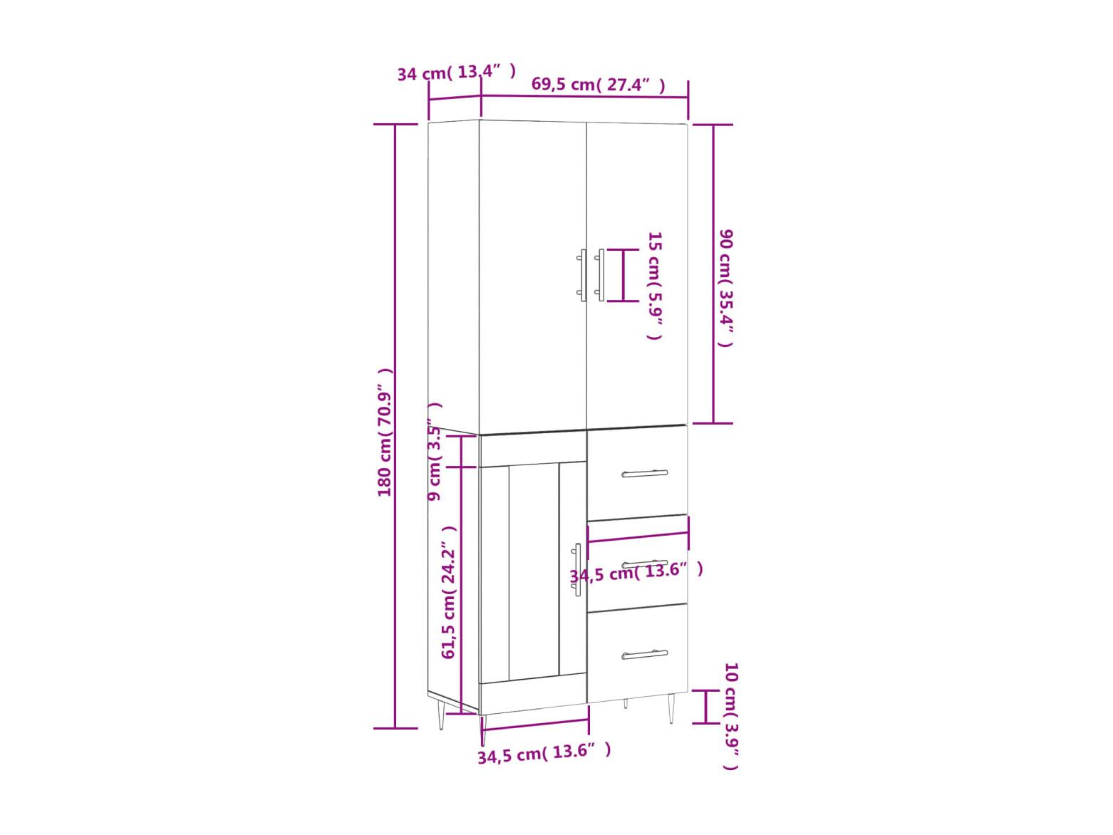 Highboard Räuchereiche 69,5x34x180 cm Holzwerkstoff