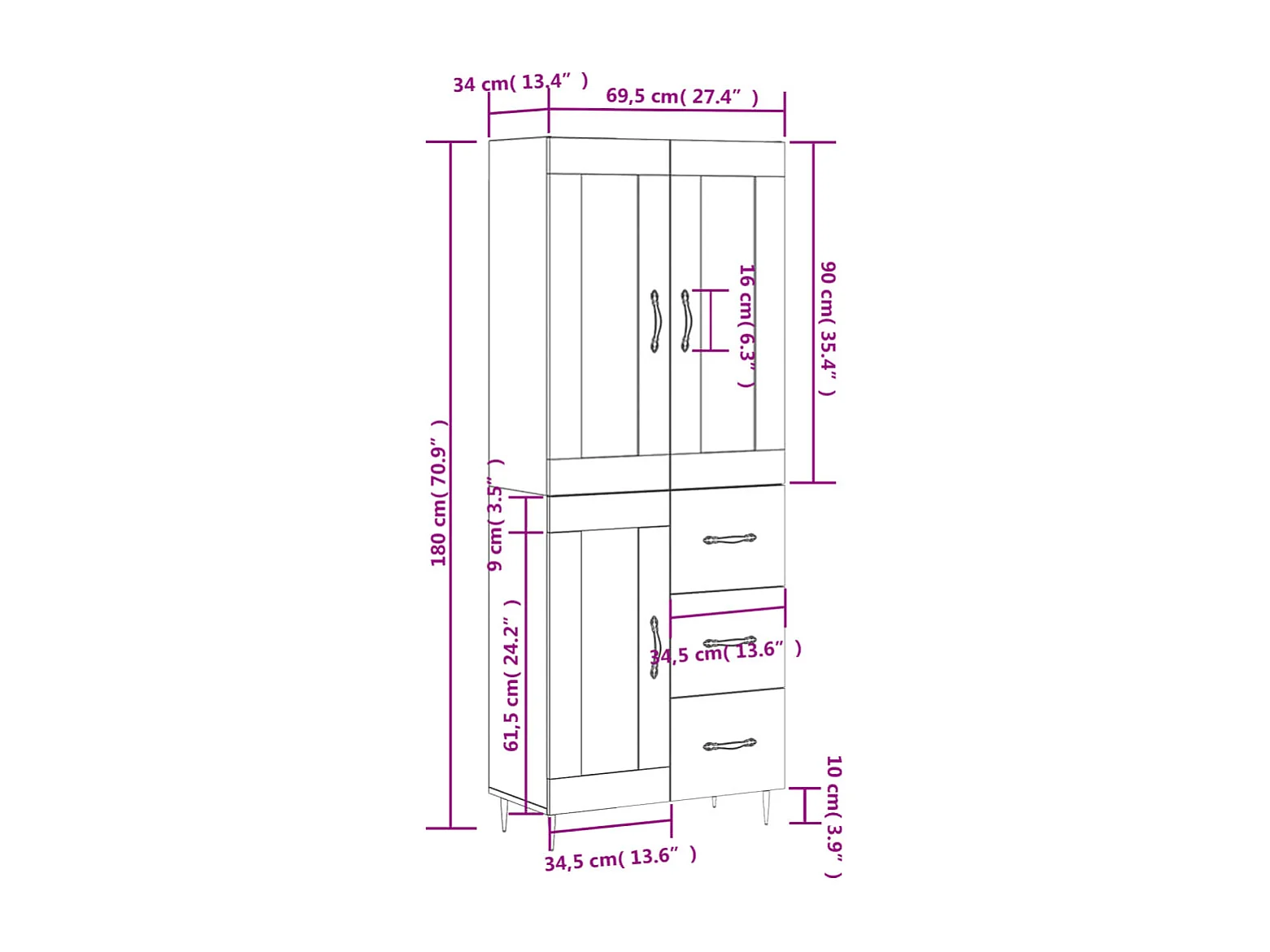 Highboard Räuchereiche 69,5x34x180 cm Holzwerkstoff
