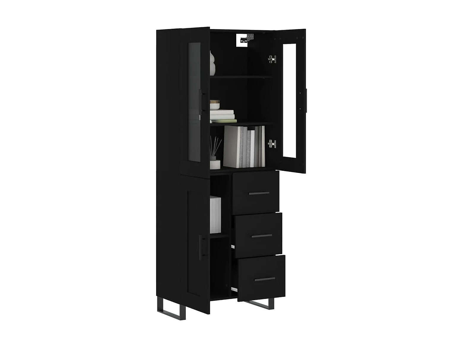 Highboard Schwarz 69,5x34x180 cm Holzwerkstoff