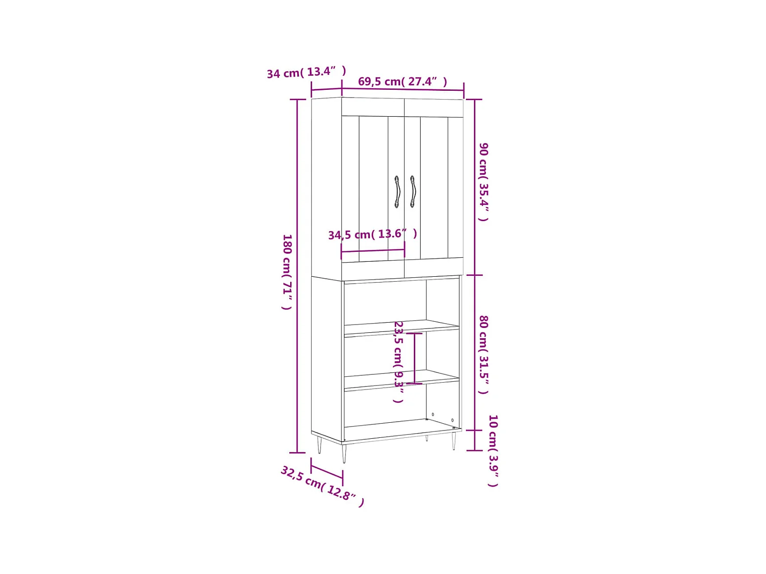 Highboard Schwarz 69,5x34x180 cm Holzwerkstoff