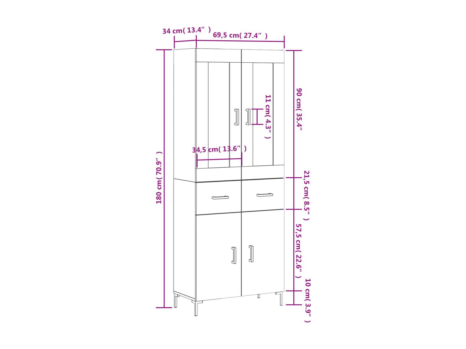 Highboard Sonoma-Eiche 69,5x34x180 cm Holzwerkstoff