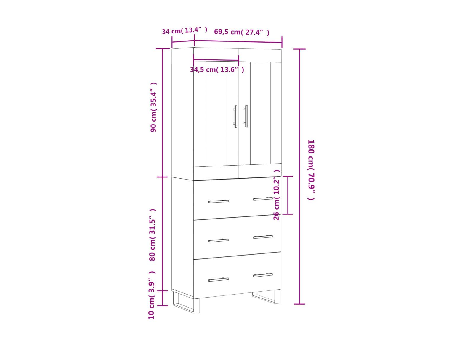 Highboard Sonoma-Eiche 69,5x34x180 cm Holzwerkstoff