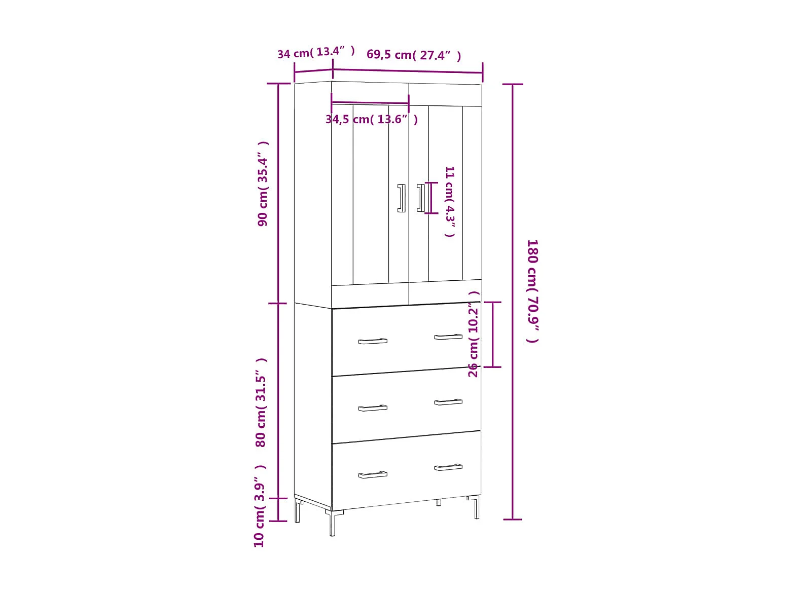 Highboard Sonoma-Eiche 69,5x34x180 cm Holzwerkstoff