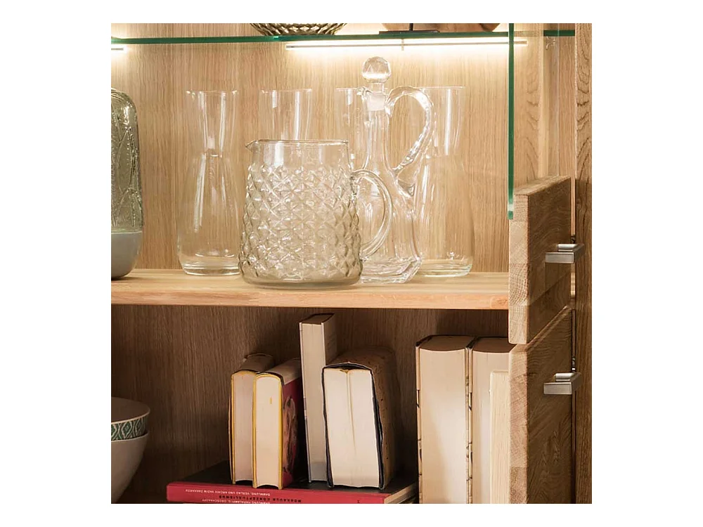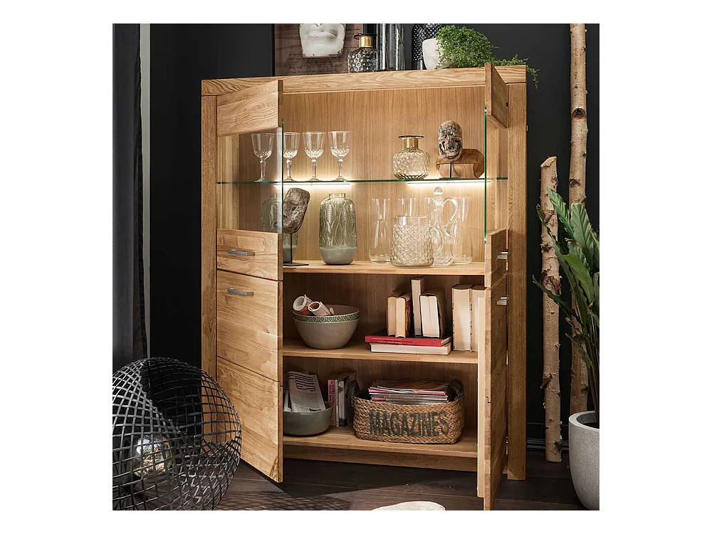 Highboard Vitrine 2 Glastüren Wildeiche Massivholz