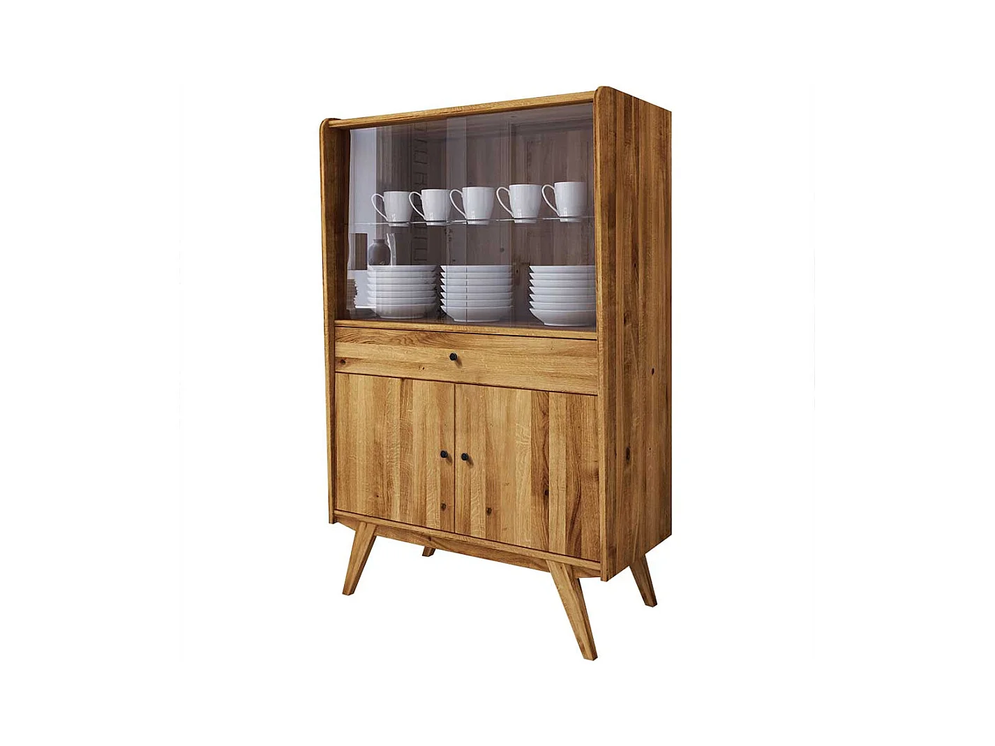 Highboard Vitrine aus Wildeiche Massivholz 100 cm breit