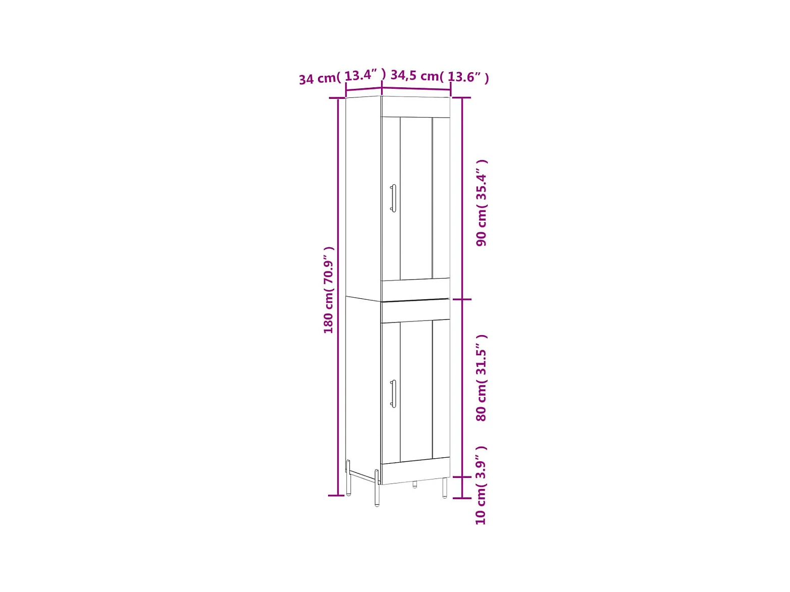 Highboard Weiß 34,5x34x180 cm Holzwerkstoff