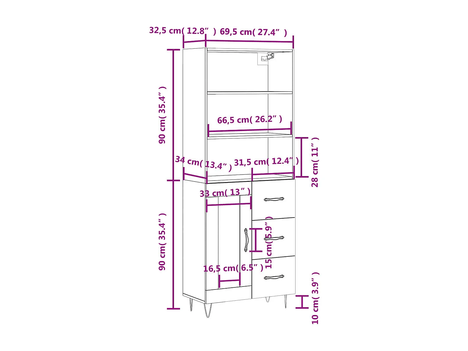Highboard Weiß 69,5x34x180 cm Holzwerkstoff