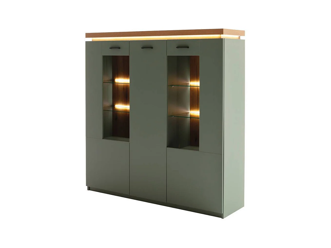 Highboard Wohnzimmerschrank mit LED Beleuchtung in Graugrün