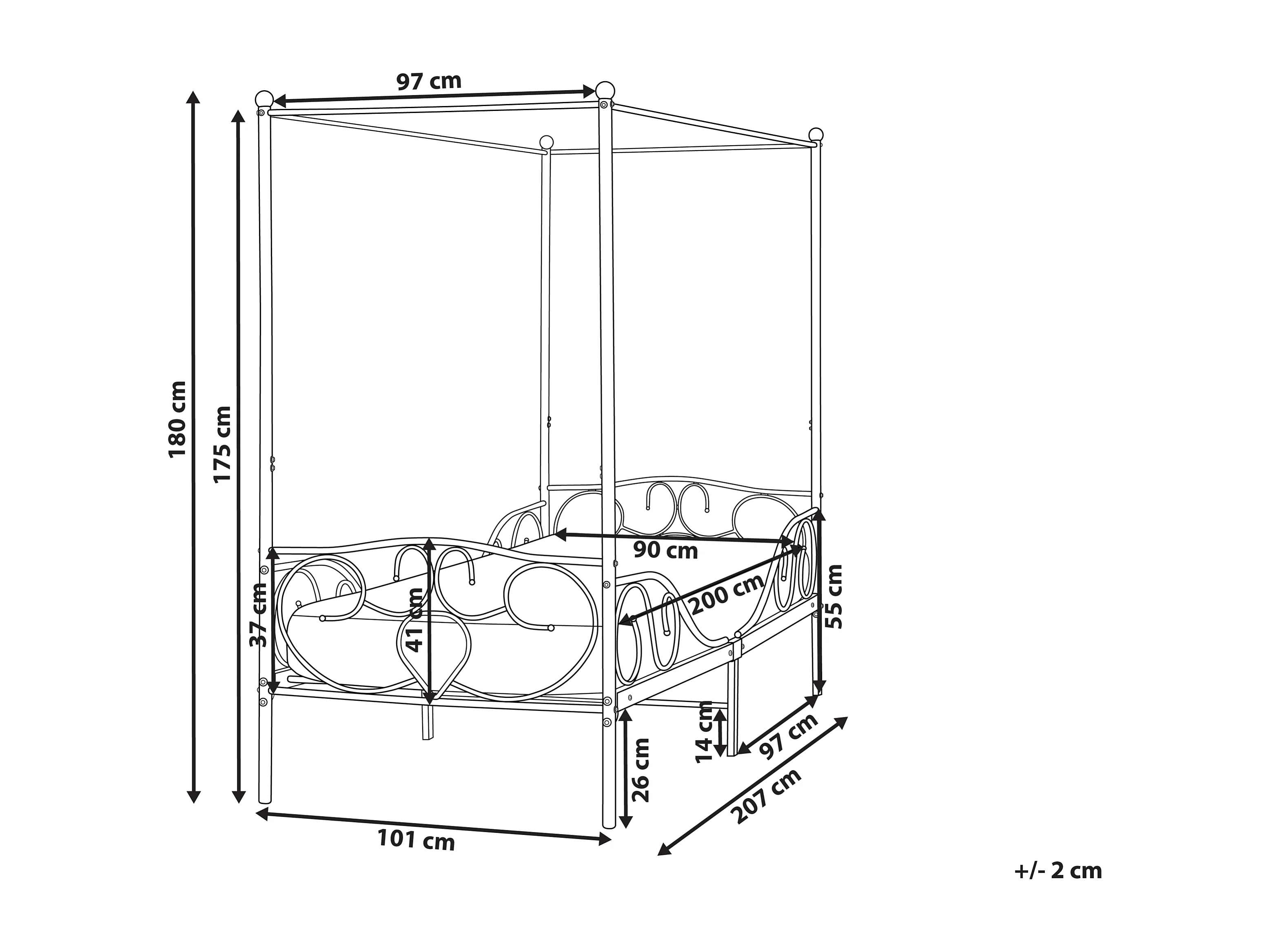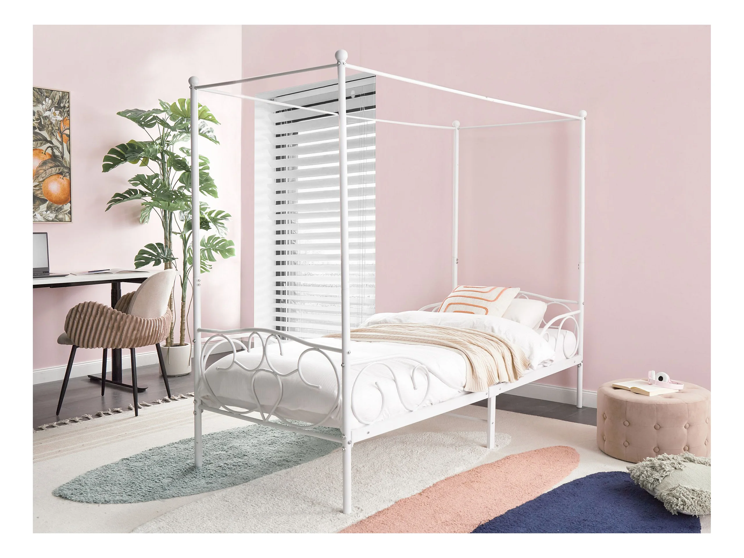 Himmelbett Metall SORMERY 90 x 200 cm Weiss