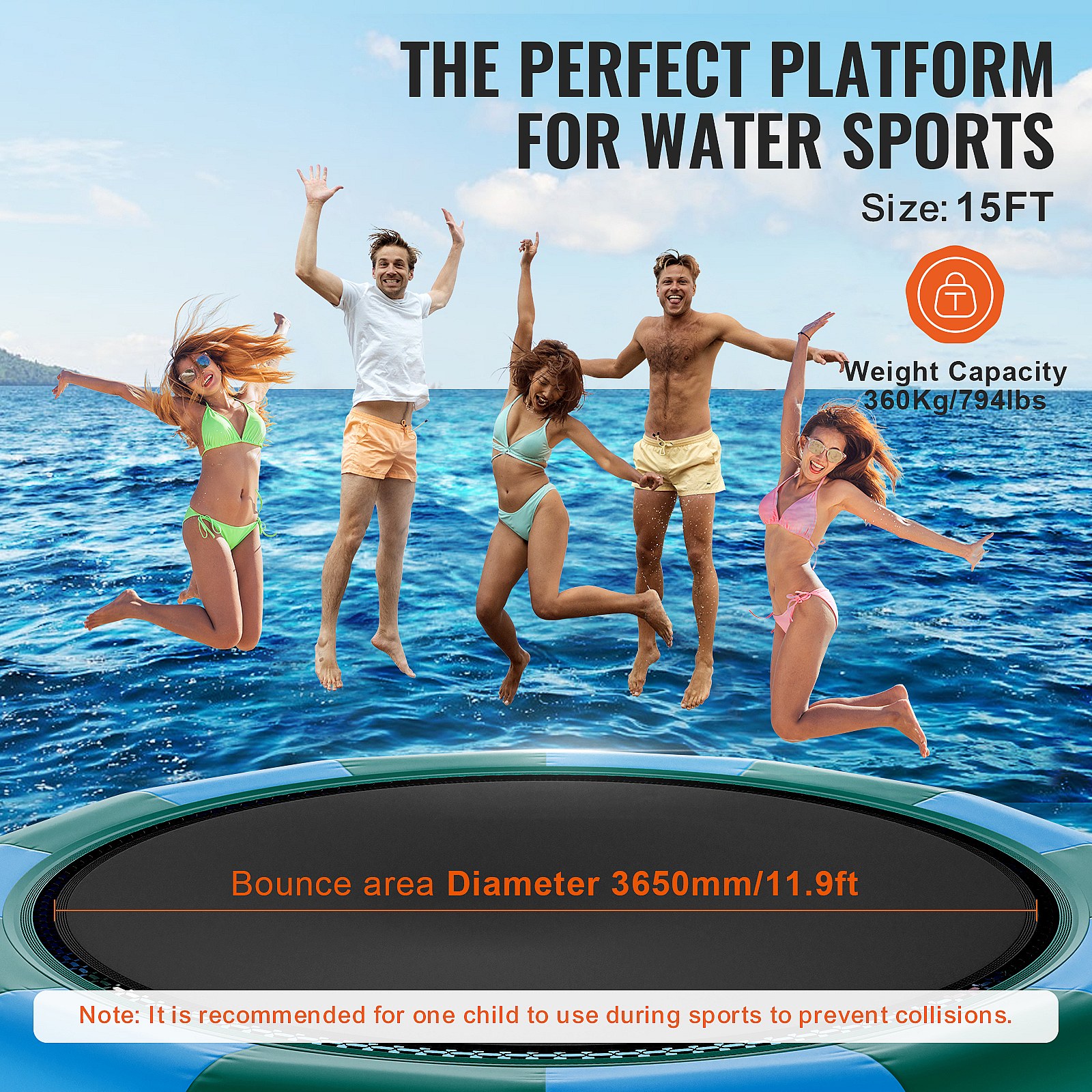 Hinflasbares Wasser-Trampolin SucceBuy 457 cm, Wasser-Trampolin 470x60 cm, Blau-Grün