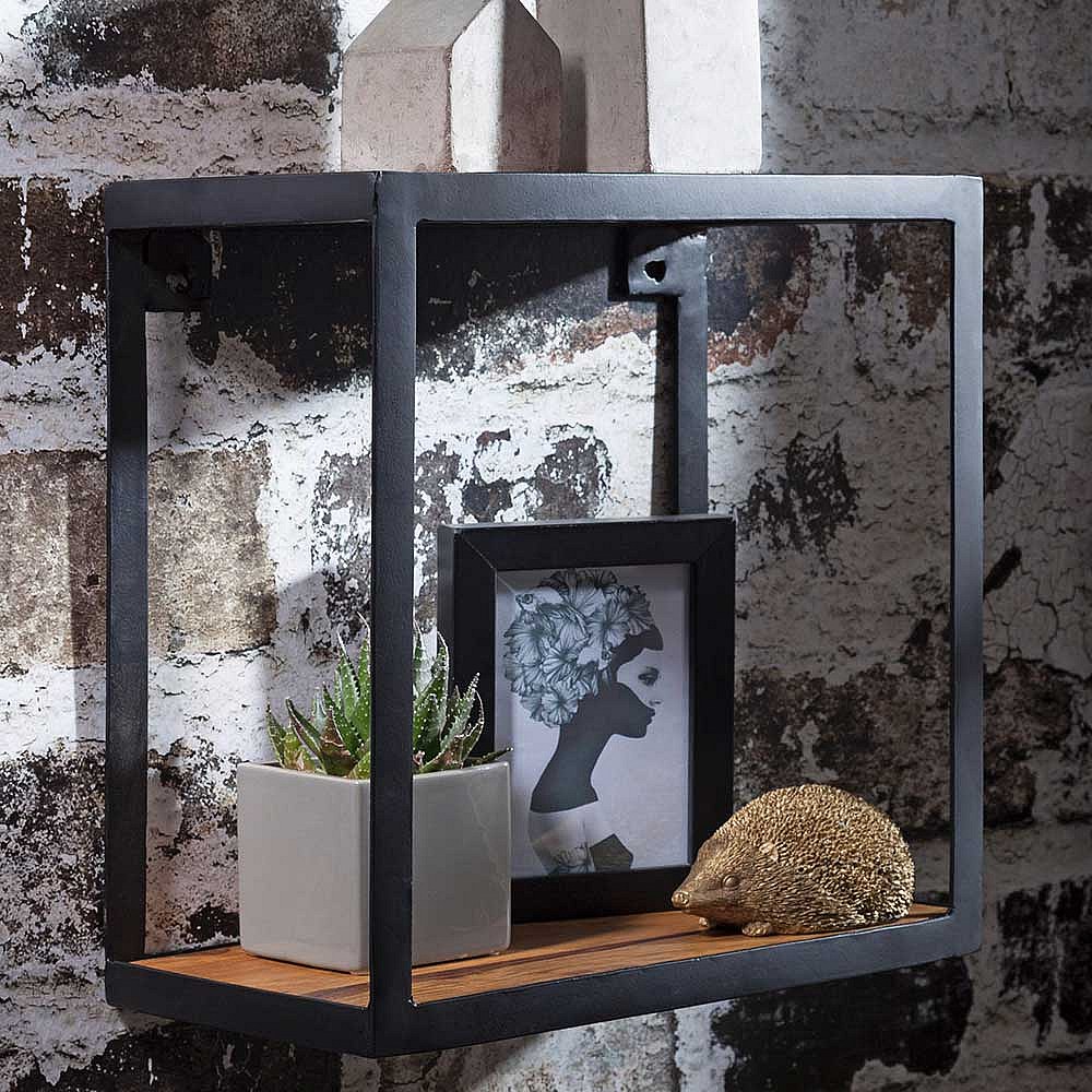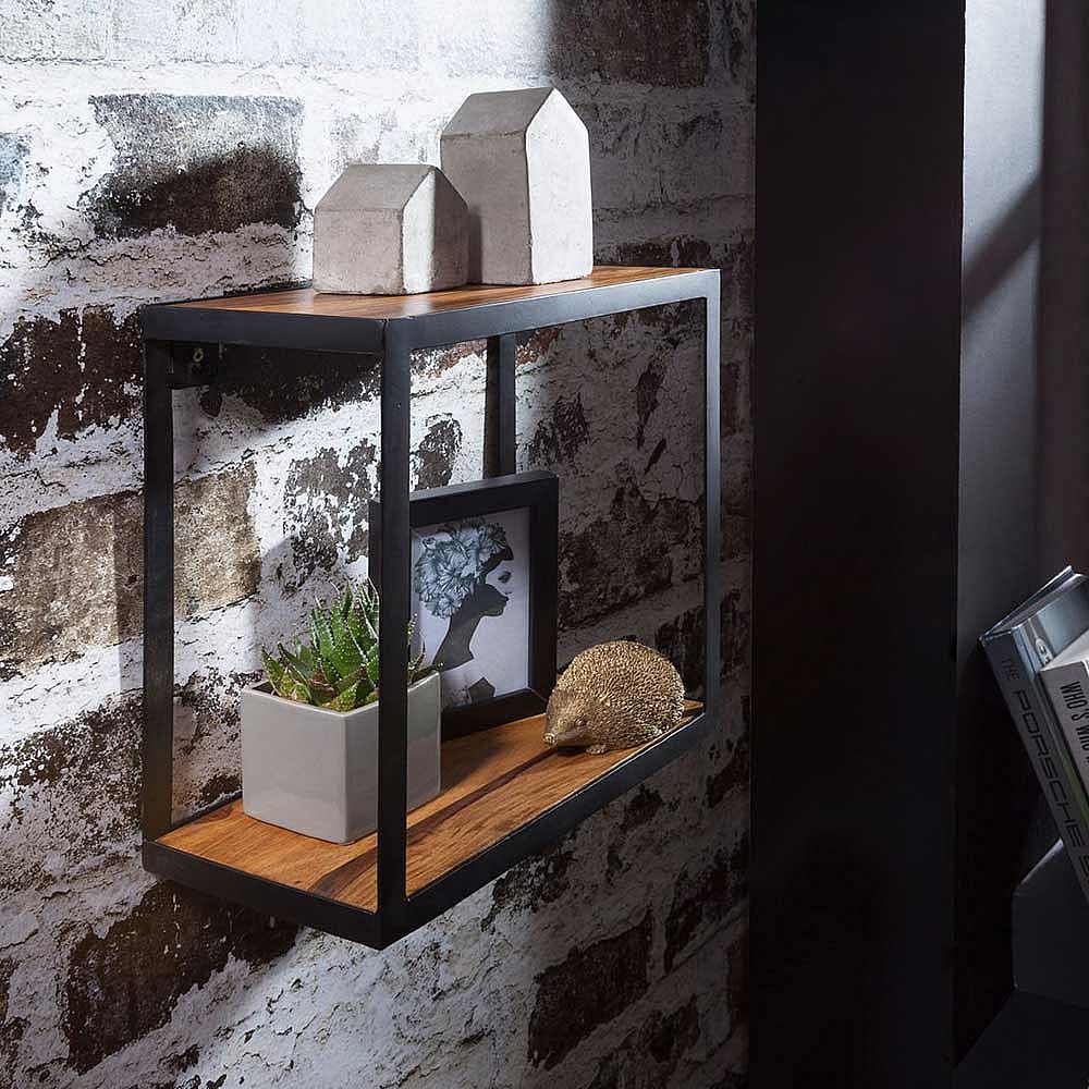H�ngeregal aus Sheesham Massivholz Eisen in Schwarz